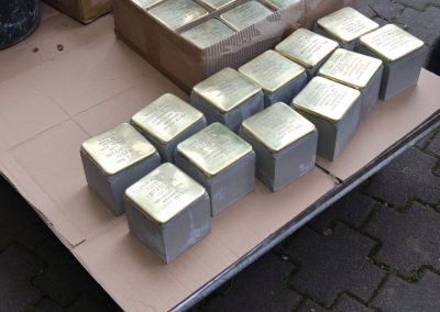 Polaganje kamena spoticanja ovoga puta je aktivnost u okviru međunarodnog projekta Never Forget (Nikada ne zaboravimo) koji provodi Židovska općina Čakovec. Program polaganja započeo je u Uskoj ulici, nastavio se u Strossmayerovoj, zatim u ulicama Ivana Mažuranića, Kralja Tomislava te na Trgu Republike.