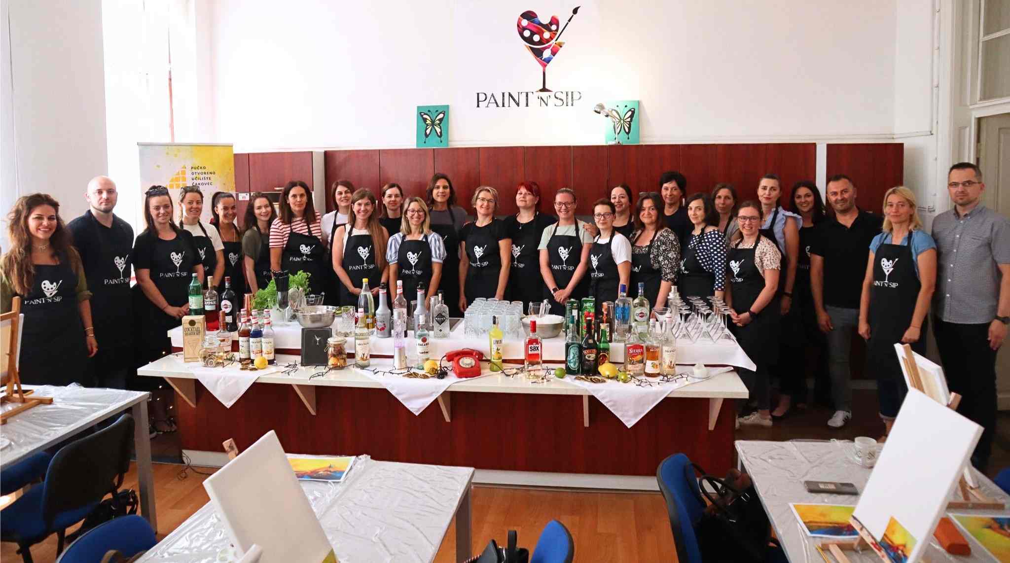 Zamislite večer ispunjenu umjetničkom kreativnošću te raznolikim i ukusnim koktelima. Naša popularna radionica „Paint ‘n’ Sip“ pruža vam jedinstvenu priliku da uz stručno vodstvo strukovnog učitelja ugostiteljskog posluživanja Gorana Žižeka naučite pripremati koktele te saznate zanimljivosti o osnovama miješanja i pripremi koktela. Nakon uspješne izrade koktela slijedi kratko predavanje o tehnikama slikanja i upoznavanje sa slikarskim priborom pod vodstvom likovne i grafičke umjetnice, Ruse Trajkove. U opuštenoj atmosferi samostalno ćete slikati i otkriti umjetnika u sebi. Prethodno slikarsko iskustvo nije potrebno, a tijekom slikanja osigurano je stručno vodstvo ukoliko je to potrebno. Po završetku radionice, sa sobom ćete ponijeti izrađenu sliku i skriptu o osnovama miješanja koktela sa receptom za izradu koktela sa radionice.