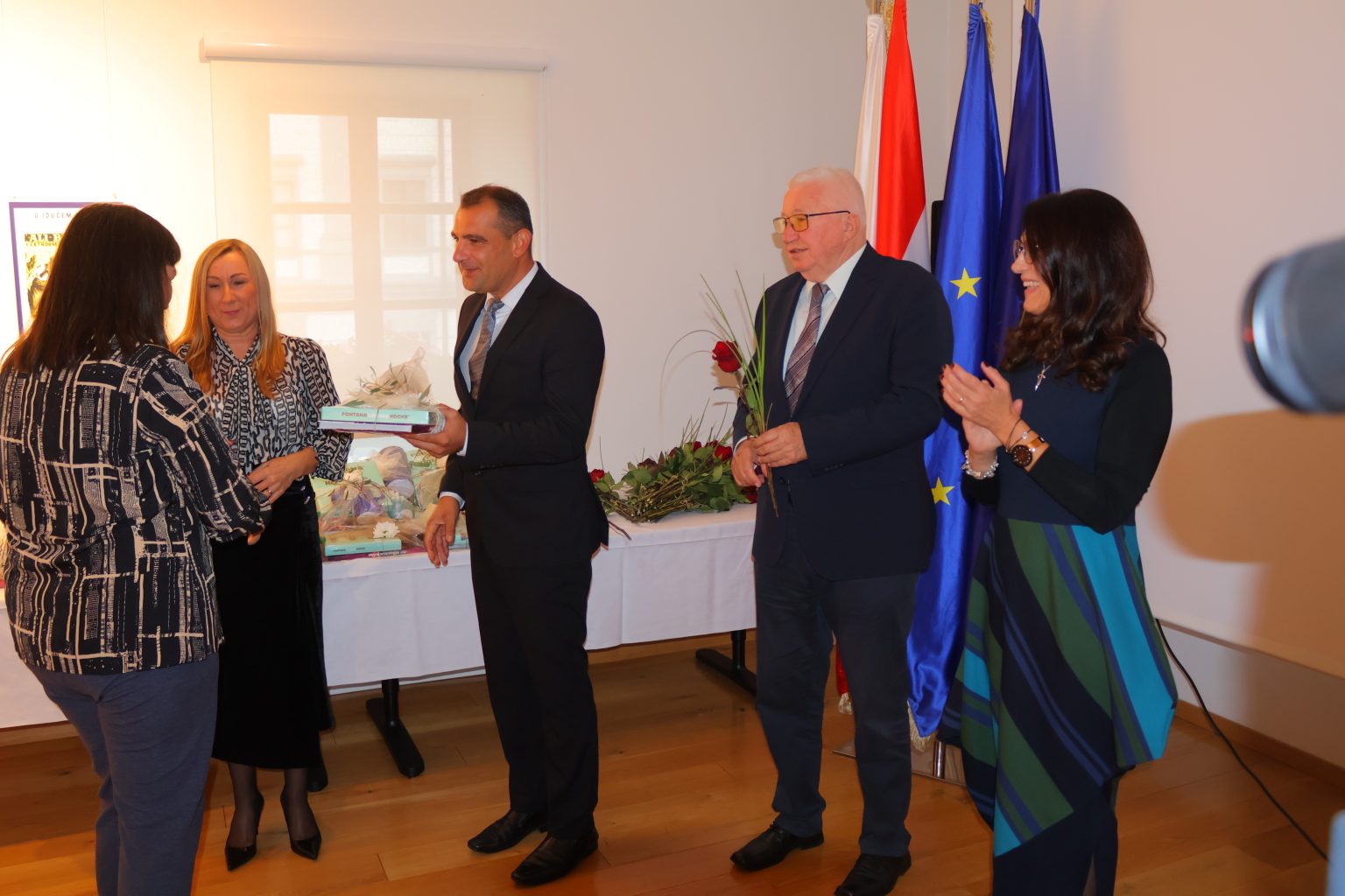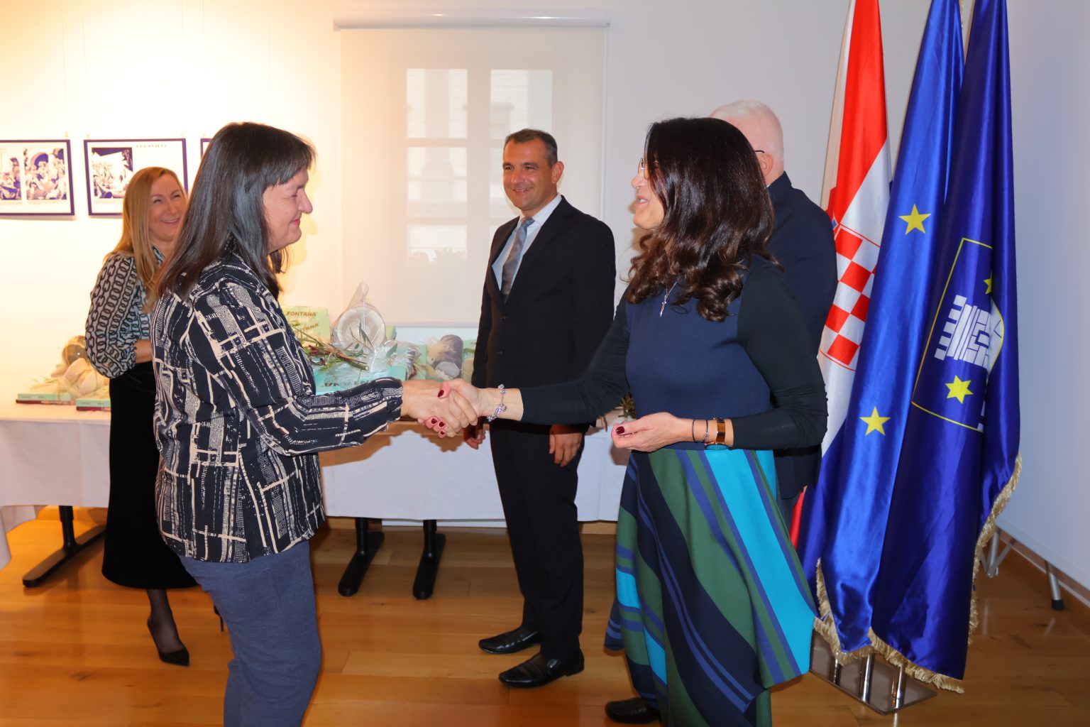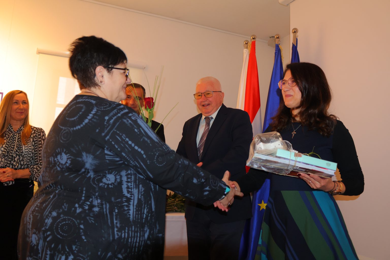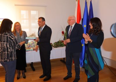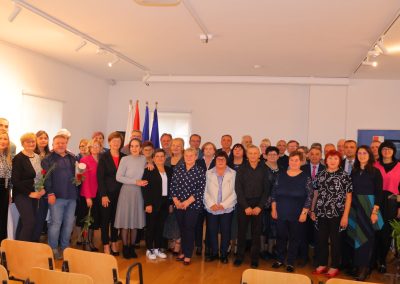 Župan i gradonačelnica uručili su i simboličan dar svakom umirovljeniku i umirovljenici kao zahvalu za profesionalni put darovan obrazovanju i odgoju učenika, njegovanju dostojanstva naših obrazovnih ustanova, te za zasluge što su naše škole drugi topli dom djeci i mladima.
