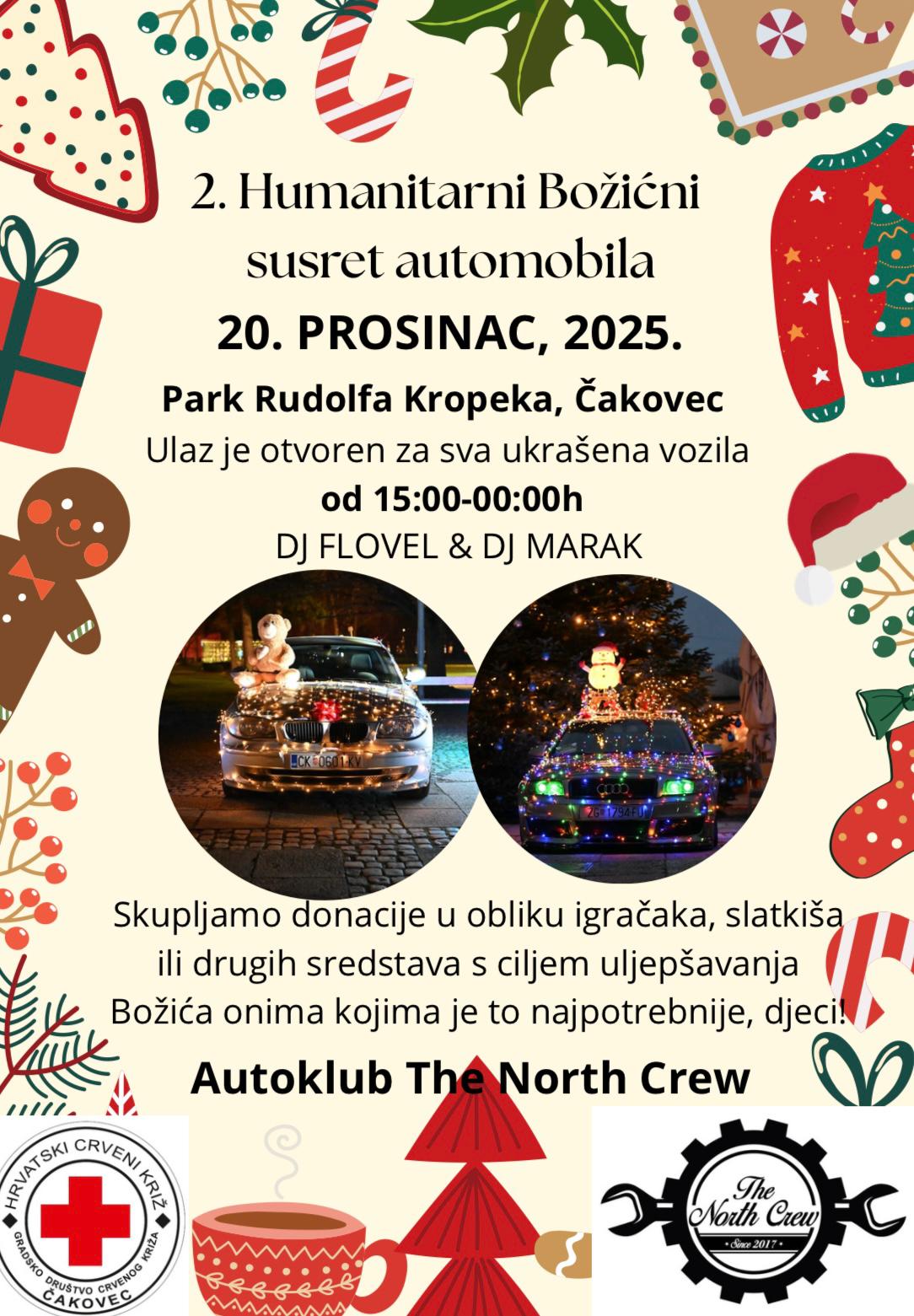 Nakon uspješnog prošlogodišnjeg prvog božićnog humanitarnog autosusreta, The North Crew i Turistička zajednica grada Čakovca pozivaju vas na veliki, drugi po redu, humanitarni božićni susret automobila.