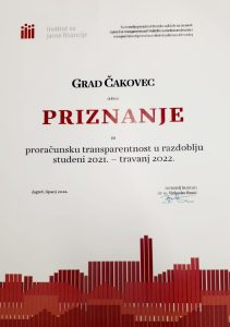 Kao jedan od najtransparentnijih gradova, Čakovec time radi na boljoj komunikaciji s građanima te povećanju povjerenja građana, uz poticanje odgovornosti Grada i gradskih službi. Ocjenjivala se objava pet dokumenata na internetskim stranicama: godišnji izvještaj, izglasani proračun, polugodišnji izvještaj, prijedlog proračuna i proračunski vodič, a Grad Čakovec objavljuje i Proračun u malom kako bi se građanima što jasnije prikazalo na koji se način troše javna sredstva.