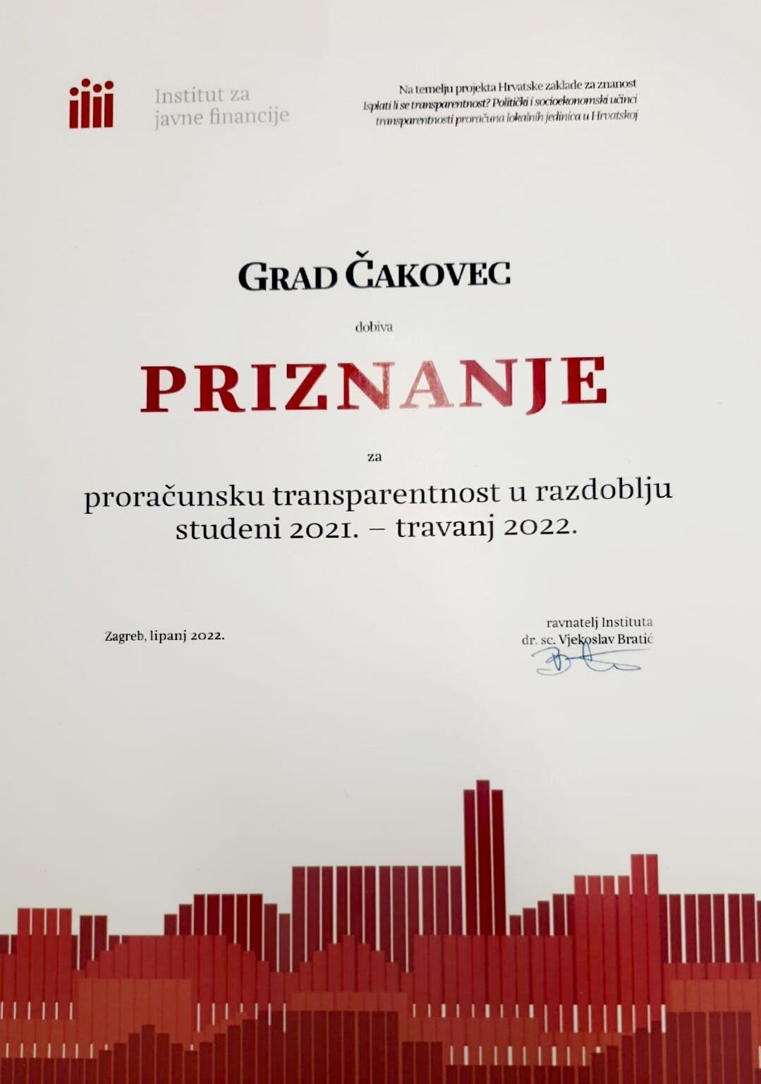 Samim time ne čudi kako je upravo Grad Čakovec dobio posebno priznanje Instituta kao pokretač jednog dugotrajnog procesa zajedničkog i sustavnog unaprjeđenja zajednice.