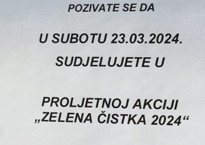 Na cijelom administrativnom području Grada Čakovca, dakle u Čakovcu i njegovih 13 mjesnih odbora, u petak i subotu, odnosno 22. i 23. ožujka 2024. provodit će se akcija „Zelena čistka 2024“.