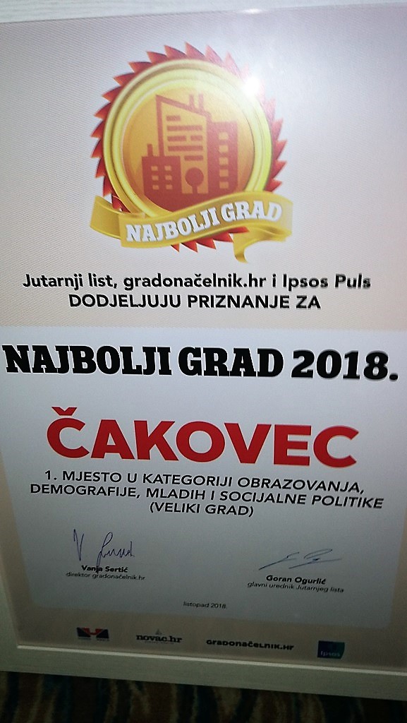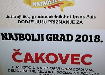 U sklopu konferencije Dani regionalnog razvoja i fondova Europske unije, koja je krajem prošlog tjedna održana u Šibeniku, održana je i dodjela nagrada „Najbolji grad“. Riječ je projektu koji je po prvi put zajedno proveli portal gradonačelnik.hr, Hanza media d.o.o. iz Zagreba, te Agencija Ipsos. Jedan od dobitnika bio je i Čakovec.