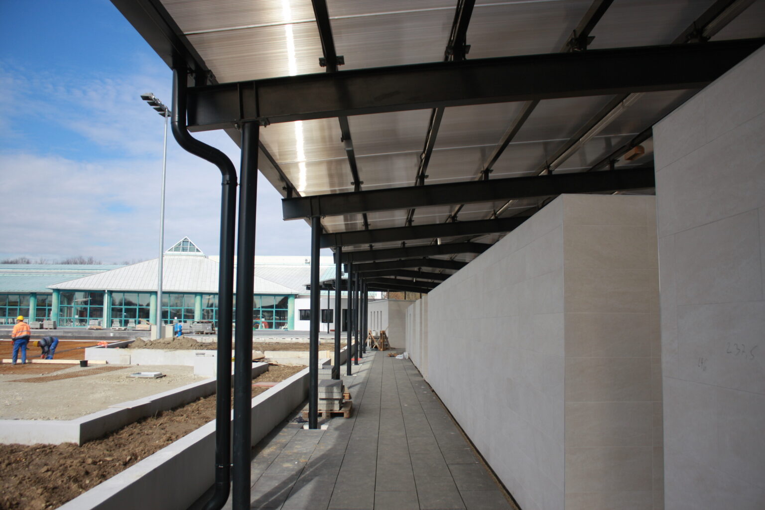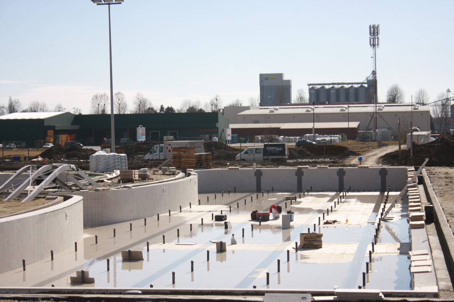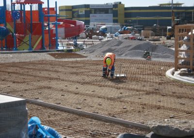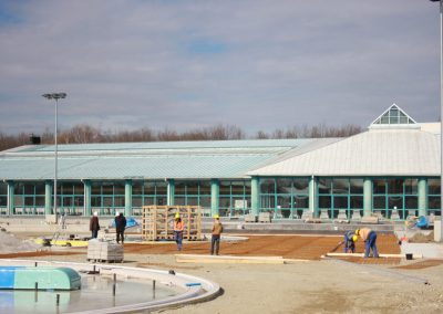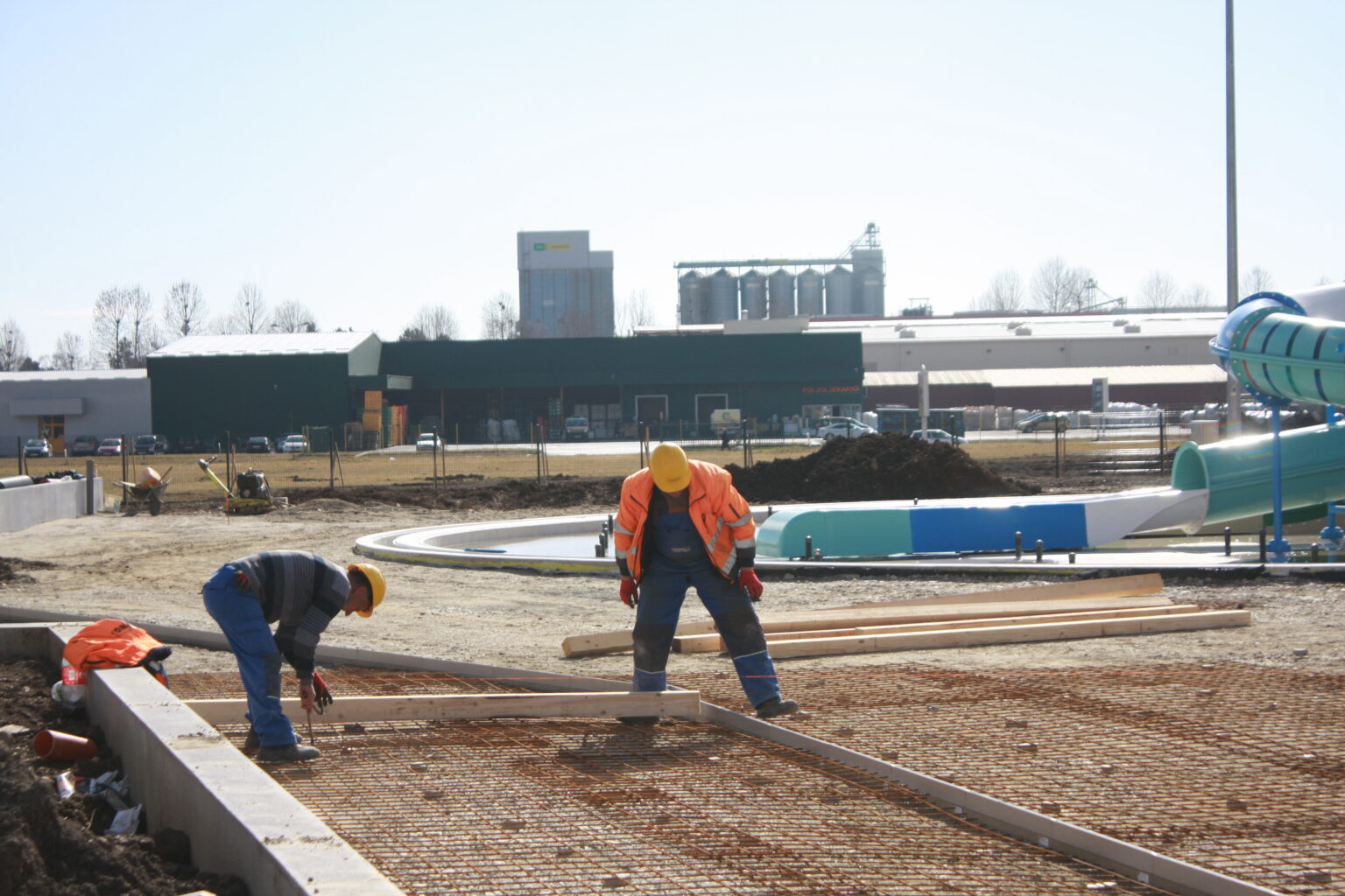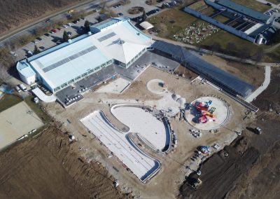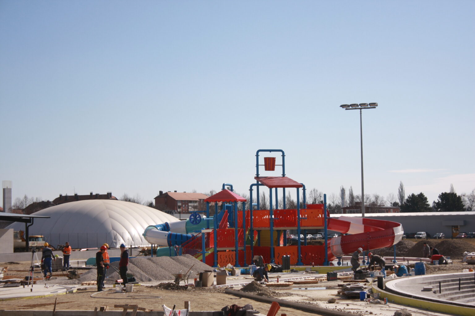 Radovi idu prema ugovorenom tijeku i većina je odrađena. Trenutno se formiraju zelena sunčališta, uređuje okoliš ulaznog kompleksa, priprema pristupna cesta, postavlja se ograda kompleksa vanjskih bazena, a u tijeku su i radovi u strojarnici, elekto radovi slabe i jake struje, spajanje i testiranje komponenti bazenske tehnike, klorne stanice i upravljačkih ormara te automatike. Nastavljeni su radovi na oblaganju rekreacijskog i plivačkog bazena keramičkim pločicama kao i uređenje sunčališta uz same bazene, na montaži sanitarne opreme, kabina, razne opreme garderoba i ureda te rasvjete bazena.