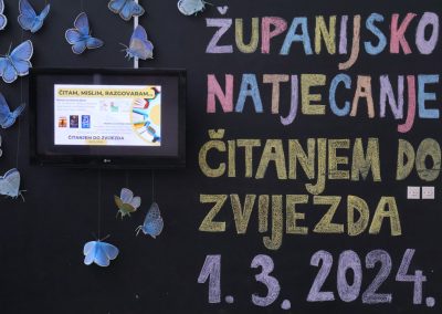 Pročelnica je kazala da su knjige poput vodiča koji nas vode korak bliže prema zvijezdama te kako čitanje potiče na razmišljanje, maštu i širenje vidika. Da je knjiga najbolji alat za učenje, otvaranje novih znanja i upoznavanje drugačijih kultura i običaja, rekla je u svom obraćanju djeci i mentorima gradonačelnica Čakovca. “Zahvaljujem organizatorima iz Knjižničarskog društva Međimurske županije i domaćinu II. osnovnoj školi Čakovec, koji neumorno i predano već dugi niz godina organiziraju ovo natjecanje. Sigurna sam da svi koji ćete se danas natjecati volite čitati te da češće posežete za knjigom nego za mobitelom, što je hvalevrijedno. Želim vam puno uspjeha na današnjem natjecanju, unaprijed čestitam pobjednicima i želim da i na državnoj razini ponovite uspjehe“, zaključila je Cividini.