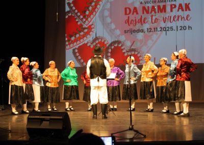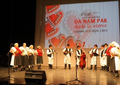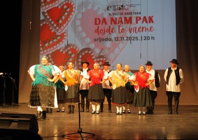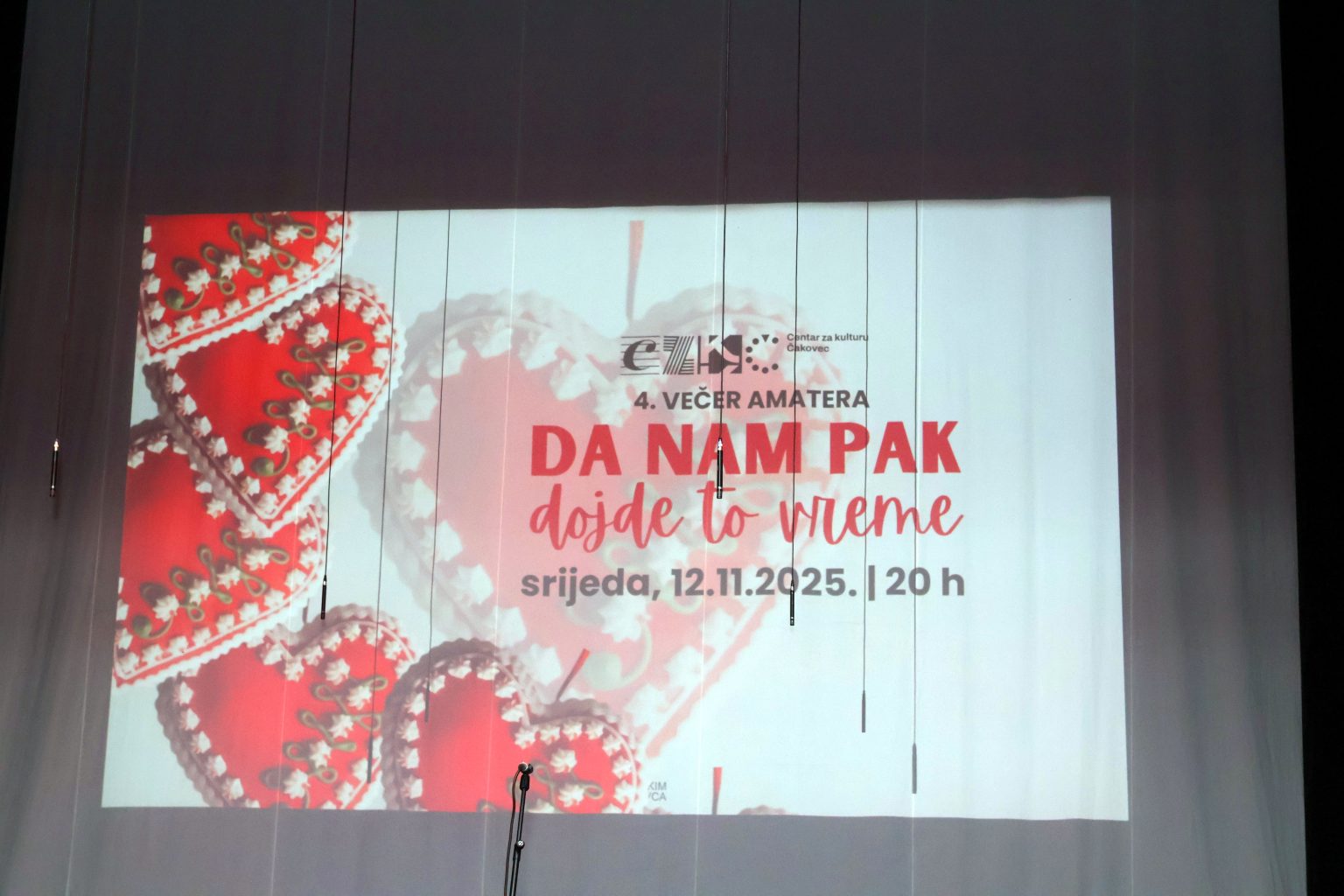 U čakovečkom Centru za kulturu u srijedu je držan glazbeno plesni program pod nazivom „Da nam pak dojde to vreme. Riječ je o posljednjoj od četiri ovogodišnje izvedbene večeri posvećene čakovečkim amaterima, a do sada je brojna publika mogla uživati u večeri zborova i vokalnih sastava, zatim u večeri orkestara i instrumentalnih sastava, večeri plesa, a posljednja su na scenu došla kulturno umjetnička društva u večeri folklora.