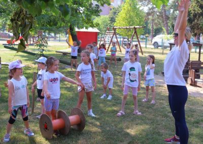 U vrtićima je održan kratki, ali bogat program prilagođen najmlađima – trenerice iz Gimnastičkog kluba Marijan Zadravec Macan osmislile su dinamičnih 30 minuta ispunjenih pripremnim vježbama, kretanjem, igrom i plesom. ”Unatoč visokim temperaturama, djeca su bila nevjerojatno motivirana i puna energije, a vesela atmosfera dodatno je potaknula njihovu želju za sudjelovanjem” izjavila je trenerica Marija Jurak Bošnjak. Dodala je kako klub, u suradnji sa sportskim zajednicama grada i županije, kontinuirano provodi brojne projekte namijenjene vrtićkoj djeci. ”Otvoreni smo za sve oblike suradnje, a zahvaljujući našim školovanim i licenciranim trenerima, spadamo među rijetke klubove koji mogu realizirati i složenije projekte” naglasila je Bošnjak, posebno pohvalivši vrtiće i njihova vodstva koja djeci omogućuju dodatan kvalitetan sadržaj kroz ovakve aktivnosti.