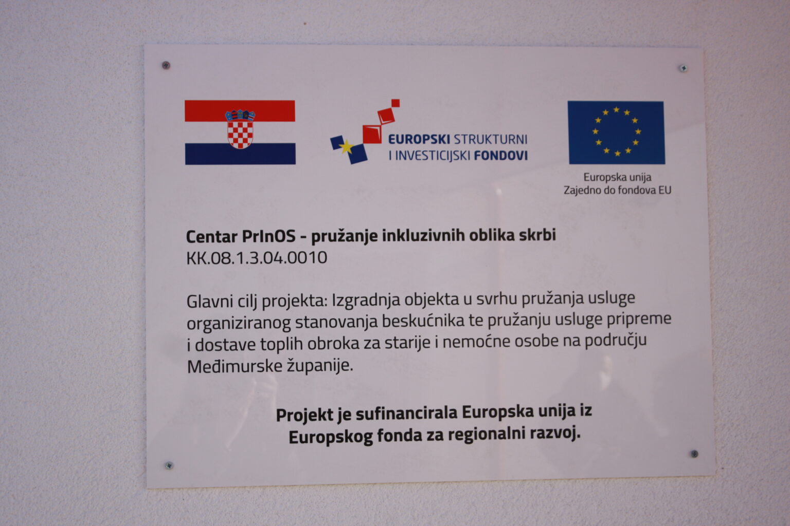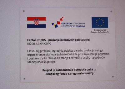 Gradsko društvo Crvenog križa Čakovec nositelj je EU projekta, financiranog u stopostotnom iznosu bespovratnim sredstvima Europskog fonda za regionalni razvoj te Operativnog programa Konkurentnost i Kohezija 2014. – 2020., dok su partneri Grad Čakovec, Centar za socijalnu skrb Čakovec te Centar za pomoć u kući Međimurske županije. Radi se o projektu vrijednom 14 milijuna kuna u okviru kojeg je izgrađen Centar PrInOS – pružanje inkluzivnih oblika skrbi koji će za područje Međimurske županije pružati nove izvaninstitucionalne usluge usmjerene na beskućnike te starije i nemoćne osobe u lokalnoj zajednici.