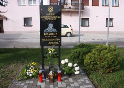 Branko Kos također je rođen 1964. godine, a u obranu zemlje uključuje se na samom početku Domovinskog rata kao policajac u PU Varaždinskoj . Također je bio pripadnih „Roda“, te je poginuo u istoj akciji pokušaja proboja neprijateljskih linija. Kos je pokopan u Varaždinu, a u kolovozu ove godine u središtu Kuršanca mu je podignuto spomen-obilježje.