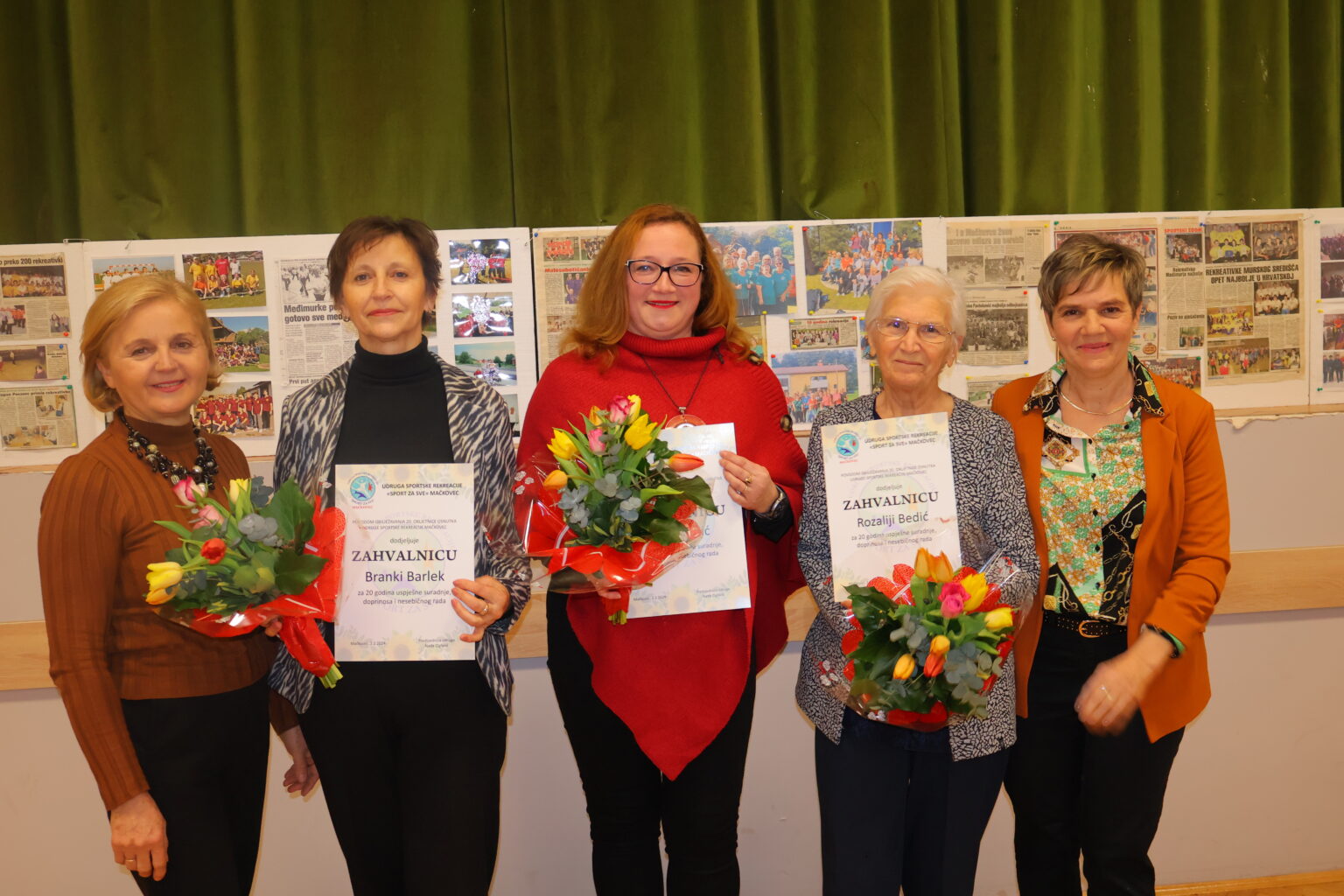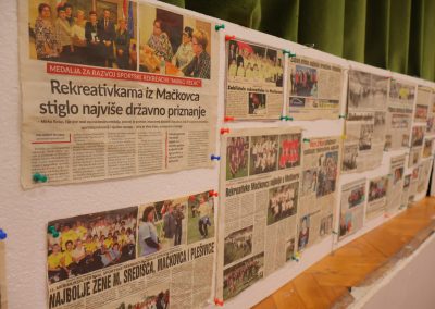 Uz pripremljenu izložbu novinskih članaka kojima su se slavila njihova postignuća te izložene nagrade, pehare i medalje, prisjetili su se svih aktivnosti prve predsjednice Jasminke Kovačić i prve tajnice Sanje Kuhar, kao i inicijalnih 26 članica udruge. U svojih 20 godina, Mačkovec, Čakovec i Međimurje uspješno su predstavljale na brojim natjecanjima sportske rekreacije, pa među mnogobrojnim uspjesima ističemo samo neke – dobivenu plaketu Hrvatskog olimpijskog odbora 2008. godine za uspješno provedene programe sportske rekreacije na lokalnoj razini, u kategoriji – male urbane sredine i godišnju nagradu Međimurskog saveza sportske rekreacije „Sport za sve“ – medalju za razvoj i unapređenje sp. rekreacije za 2007. Iste su godine bile domaćini 5. hrvatskog festivala sportske rekreacije žena, a u 2016. i 2023. domaćini županijske razine festivala. Domaćinstvom u 2023. godini plasirale su se na državnu smotru u Karlovcu gdje su uz osvojena dva srebra i jednu broncu uzele ekipno 4. mjesto u zemlji. Krajem prošle godine u udrugu je stiglo još jedno priznanje, nagrada županijskog saveza u obliku medalje – za unapređenje sportske rekreacije.