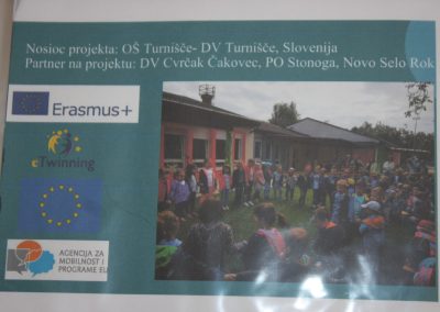 Uspješan projekt pozdravila je i gradonačelnica Grada Čakovca Ljerka Cividini ispred osnivača vrtića te čestitala odgojiteljima, roditeljima i stručnim suradnicima na dugogodišnjoj prijateljskoj suradnji koju smatra neophodnom za razvoj i osnaživanje svih sudionika projekta, uz dakako naglasak na učenje i boljitak 46 djece iz vrtića u Novom Selu Rok i 134 djece iz vrtića „Turnišče“. Za djecu su tijekom trajanja projekta organizirane raznovrsne aktivnosti koje su se provodile zajedno s odgojiteljima, roditeljima, stručnim suradnicima, lokalnom i širom društvenom zajednicom, a održana je i stručna edukacija odgojitelja. S međimurske strane ukupno je sudjelovalo 5 stručnih odgojitelja, dok sa slovenske strane njih 16, objasnila je koordinatorica projekta Smiljana Nedeljko iz PO „Stonoga“ i dodala da je između niz aktivnosti održan zanimljiv Erasmus day, nekoliko zoom sastanaka i susreta djece tijekom pandemije, no i razmjena dječjih poruka i radova, te pripremljena slikovnica i lutka Svemirko.