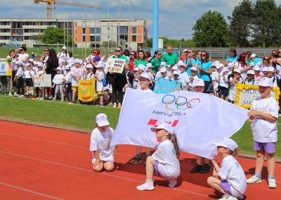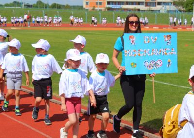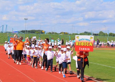 Program je već tradicionalno krenuo svečanim defileom svih sudionika vrtićke olimpijade, njihovih odgajatelja i voditelja, a po jedan predstavnik svakog vrtića imao je čast nositi olimpijski plalamen, dok su olimpijski zastavu, nosili prošlogodišnji pobjednici Saša Posavec, Ivona Čavlek, Tesa Slamek, Bartol Sokač, Oliver Crnčec i Donat Martinković