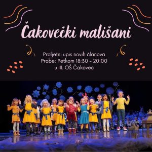 Dječji zbor “Čakovečki mališani” na čelu s voditeljicom Majom Magdalenić Barić obavještava sve zainteresirane kako su u tijeku probe i upisi u čakovečki zbor!