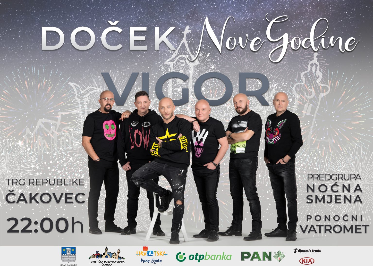 Grad Čakovec i Turistička zajednica grada Čakovca već tradicionalno organiziraju Doček nove godine na Trgu Republike, ove godine uz koncert grupe Vigor i Noćne smjene kao predgrupe. Program započinje u 22.00 h.