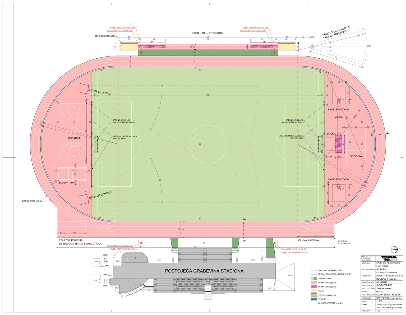 Na prostoru SRC „Trate“ u Nedelišću će biti izgrađeno pomoćno nogometno igralište s umjetnom travom, atletske staze (4 trkaće staze i ravni dio sa 6 staza za sprint i prepone), atletska borilišta: skok u vis, motka, skok u dalj/troskok, bacanje kugle i loptice, zatim igrališta za košarku, odbojku i badminton te će biti uređen okoliš i rasvjeta cijelog kompleksa.