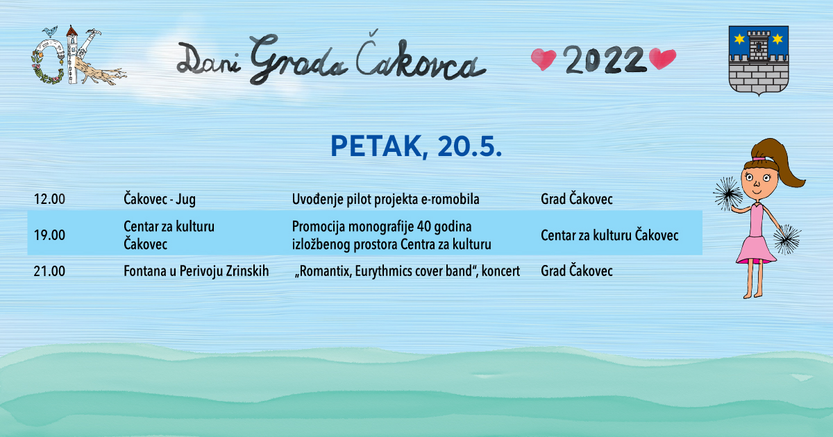 Istoga dana u 19 sati održat će se promocija monografije 40 godina izložbenog prostora Centra za kulturu Čakovec 1981. – 2021. Članice Likovne komisije Centra za kulturu, diplomirane povjesničarke umjetnosti Maja Žvorc, Tanja Karas i Marta Horvat, u monografiji su pisale o Izložbenom prostoru koji je vizualno odgajao generacije Čakovčanaca te postao prepoznatljivo mjesto likovne umjetnosti i kulture. Protok vremena izlagačke djelatnosti Centra prati entuzijastičke osamdesete, preko nametnutih programskih postulata devedesetih, do programsko bogatih posljednjih dvadeset godina. U početku je Izložbeni prostor angažirao likovne umjetnike iz Čakovca i okolice te pratio programe u dvorani, pojedinačne i obljetničke, čime se utemeljila multimedijalnost Centra za kulturu. Monografija uključuje i popis izložbi realiziranih od osnutka Izložbenog prostora te tekstove recenzenata Feđe Gavrilovića i Marijana Špoljara.