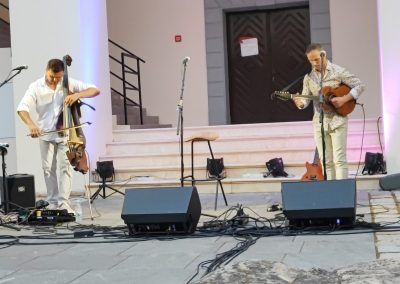 Gost na koncertu dvojice virtuoza na kontrabasu i tamburici bio je Pero Galić, kojeg su snažan vokal i karizmatični nastupi učinili jednim od najprepoznatljivijih frontmena hrvatske rock scene. Kad se njegov glas spojio s tamburaško-gudačkim duom dobili smo nezaboravnu glazbenu večer u Starom gradu Zrinskih.