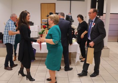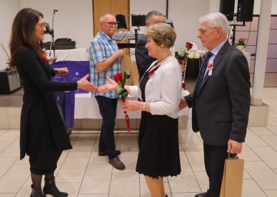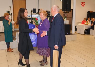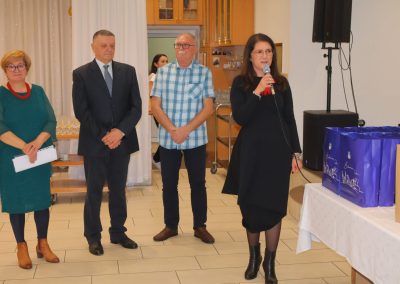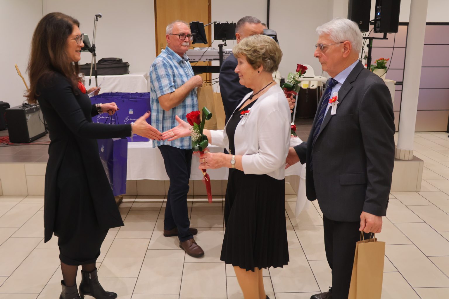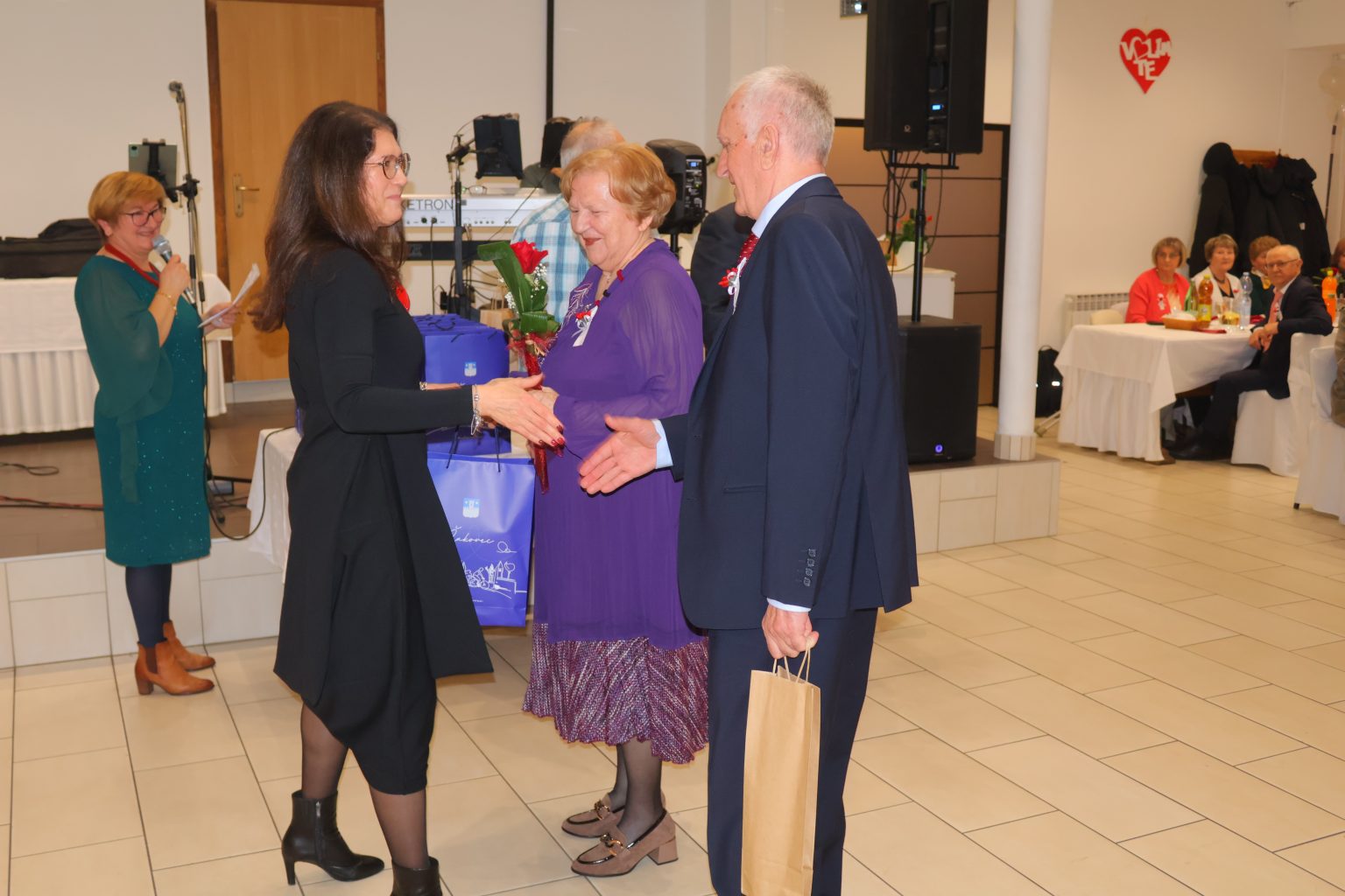 Svečanost je svojim dolaskom uveličala i gradonačelnica Grada Čakovca, Ljerka Cividini, koja je slavljeničkim parovima uručila prigodne poklone te im se obratila prigodnim riječima. „Danas ne slavimo samo godine – slavimo ljubav i snagu osjećaja koji je izdržao vrijeme, izazove, radosti i kušnje. Pedeset i šezdeset godina braka nije samo broj, to je život ispunjen zajedničkim koracima, isprepletenim rukama i pogledima koji govore više od riječi. Kroz desetljeća ste gradili domove, obitelji i uspomene. Svaki osmijeh, svaka suza i svaka prebrođena briga utkane su u vašu priču. To su dragocjeni zajednički trenuci koji s godinama postaju nezaboravne uspomene, brižno čuvane u srcima – ne samo vašim, nego i svih onih koji su bili dio vašega zajedničkog puta. Možda su se vremena promijenila, svijet ubrzao, a običaji prilagodili novim generacijama, no vrijednosti koje ljubav i prijateljstvo donose ostaju nepromijenjene. Zajedništvo, međusobna podrška i toplina odnosa temelj su svake dugotrajne i ispunjene veze. Svojim ste životima pokazali da prava ljubav nije prolazna iskra, nego trajna svjetlost koja grije i kada dođu hladniji dani. Vaša priča uči nas strpljenju, razumijevanju i odanosti. Uči nas da je najveće bogatstvo imati nekoga uz sebe, u zdravlju i bolesti, u radosti i tišini svakodnevice. Neka vam i dalje svaki novi dan bude dar, ispunjen mirom, zdravljem i zahvalnošću za sve proživljeno. Od srca vam čestitam na vašem zlatnom i dijamantnom jubileju“, poručila je gradonačelnica Cividini.