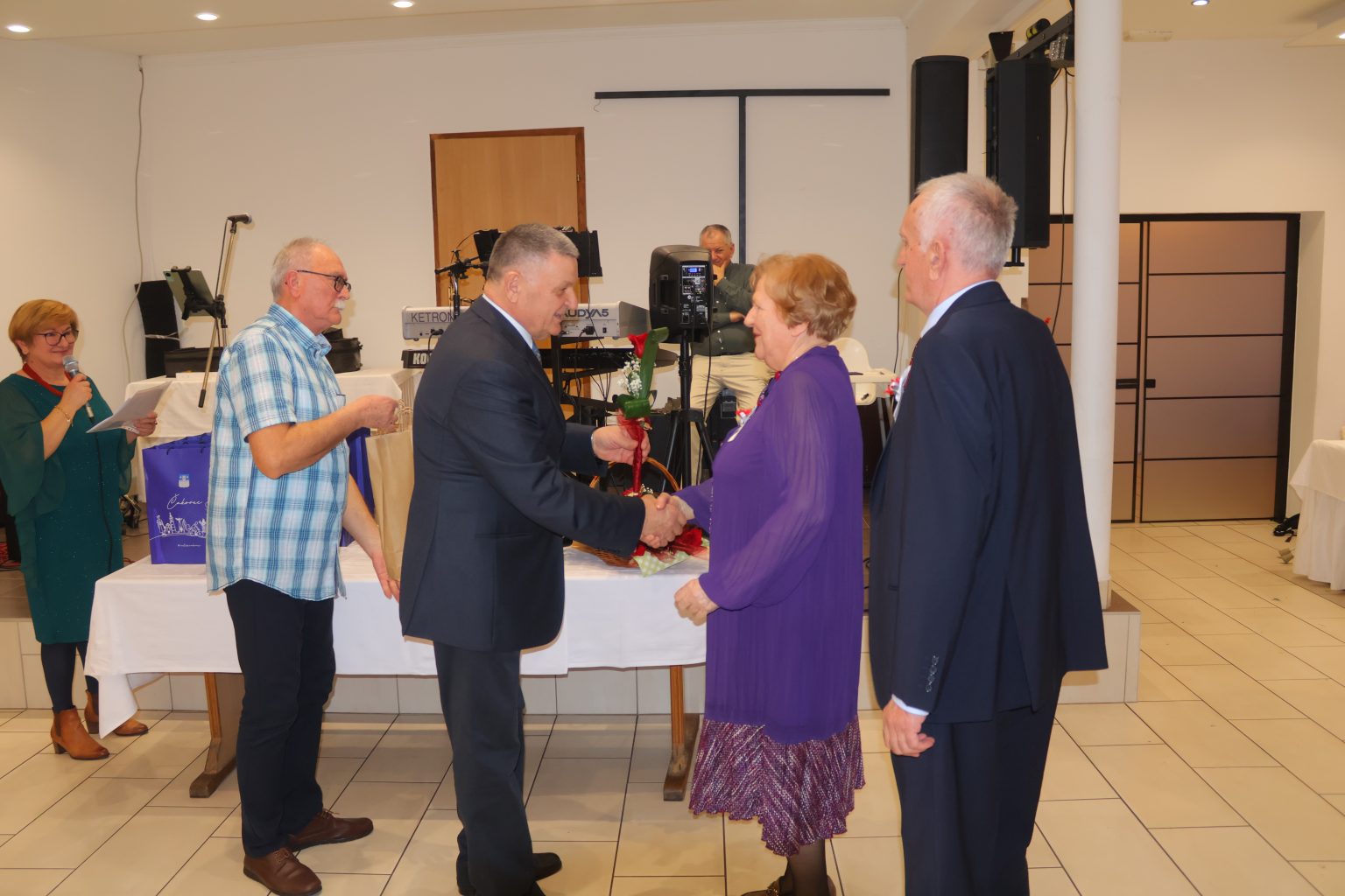 Župan Međimurske županije Matija Posavec zbog spriječenosti nije mogao nazočiti proslavi, no u njegovo je ime slavljenike pozdravio, čestitao im i uručio crvene ruže zamjenik predsjednice Udruge umirovljenika Grada Čakovca Marijan Turk.