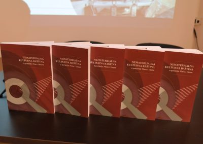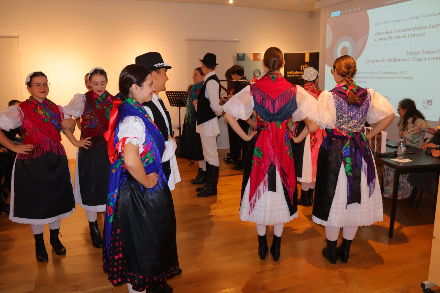 Prva predstavljena knjiga je zbornik „Nematerijalna kulturna baština u porječju Mure i Drave“, čija je urednica etnologinja Janja Kovač. Publikacija je nastala kao rezultat istoimenog međunarodnog znanstvenog skupa održanog krajem 2023. godine. O zborniku su govorili urednica Janja Kovač i Anđelko Vlašić. Zbornik donosi 14 stručnih članaka koji obrađuju temu nematerijalne kulturne baštine iz različitih perspektiva. Poseban naglasak stavljen je na ulogu institucija i udruga u promicanju tradicijskih praksi, načinima njihovog očuvanja kroz manifestacije, kao i ključnom elementu – prenošenju vještina s generacije na generaciju.