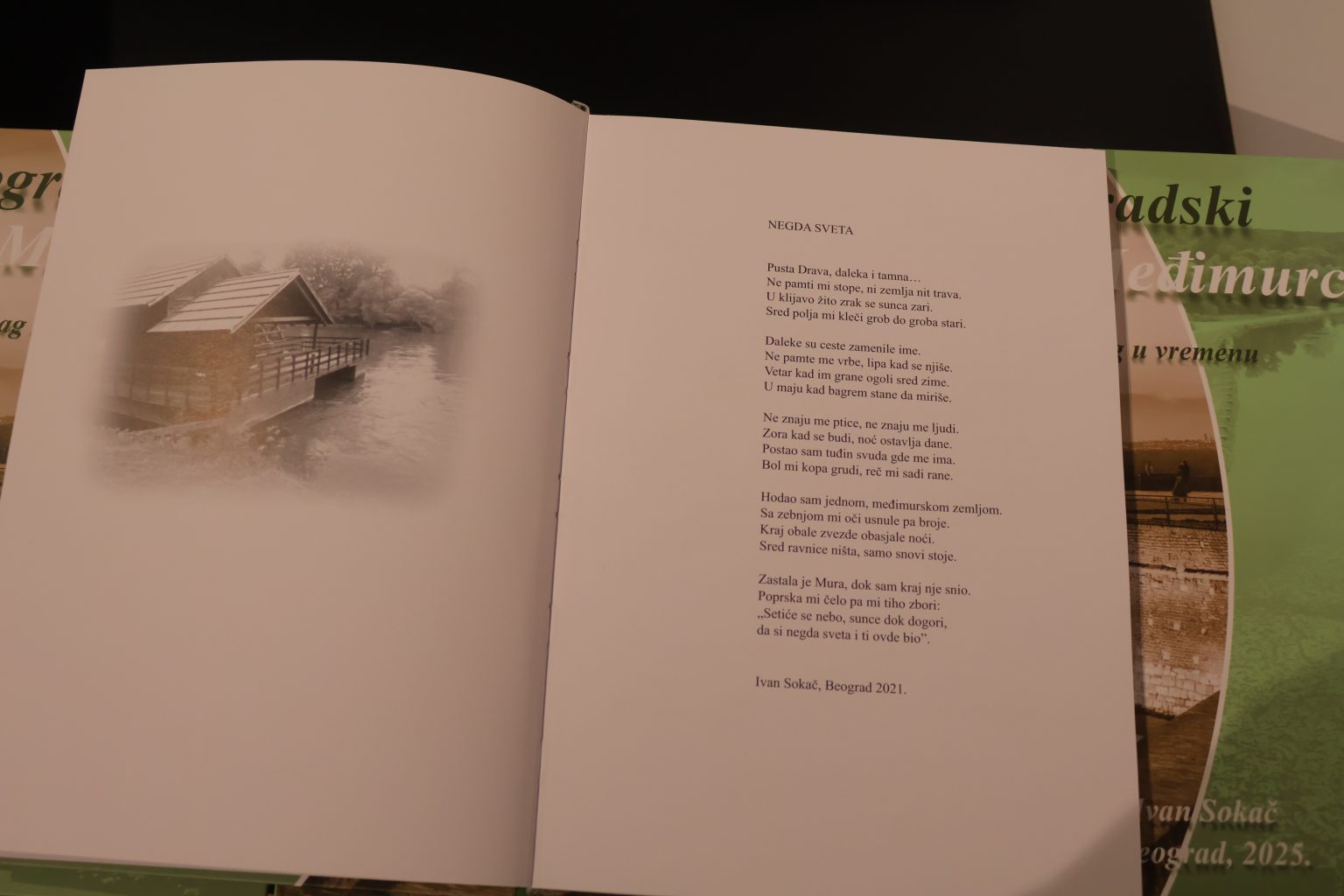 Druga predstavljena knjiga je monografija „Beogradski Međimurci. Trag u vremenu“, izdana ove godine pod pokroviteljstvom Središnjeg državnog ureda za Hrvate izvan RH. Autor je Ivan Sokač, Beograđanin rodom iz Međimurja.