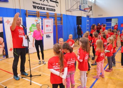 Tijekom današnjeg događaja u dvorani I.OŠ Čakovec, predstavili su se i uspješni sportaši i sportski djelatnici Nenad Vrbanec, Matija Horvat i Goran Kolarić. Nakon uvodnog dijela i zagrijavanja, sudionici su sudjelovali u raznim sportskim aktivnostima, mjerenju krvnog tlaka te edukacijama o zdravim navikama. Na kraju, svi su se okupili za zajedničku fotografiju u obliku srca i sudjelovali u plesu uz hit Baby Lasagne „Rim Tim Tagi Dim“.