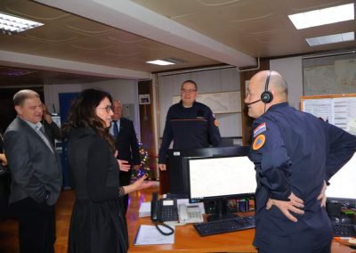 U Centru 112 dočekali su ih voditelj službe Ladislav Söke, voditelj ŽC 112 Marijan Pongrac, te dežurni u smjeni, Radovan Kuzmić i Davor Soldat. U OKC-u međimurske policije gradonačelnicu i zamjenika župana ugostili su voditelj smjene Dragan Golubić, pomoćnik voditelja Kristijan Vincek te šef smjene PPRP Čakovec Josipa Šarić. U Javnoj vatrogasnoj postrojbi Čakovec pak su ih dočekali zapovjednik Mladen Kanižaj, voditelj smjene Stjepan Herman, operativni dežurni Marijan Kovačić, voditelj grupe Rajko Bogdan, voditelj odjeljenja Zdravko Orehovec, prvi vozač Renato Matoša, drugi vozač Dario Mesarić i vatrogasac Dubravko Cvetko. U zdravstvenim ustanovama gradske i županijske dužnosnike dočekali su dežurni liječnici te medicinske sestre.