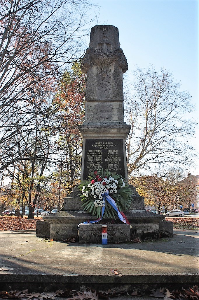 U I. svjetskom ratu, dotad najgoroj ratnoj katastrofi, boreći uglavnom na istočnom bojištu, poginuo je i velik broj Međimuraca. Svojim poginulim sugrađanina, građani Čakovca već 1929. godine podižu spomenik, a povodom stote obljetnice završetka, vijenac podno njega u nedjelju je položio gradonačelnik Grada Čakovca Stjepan Kovač.