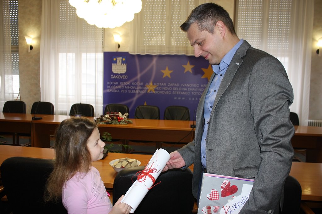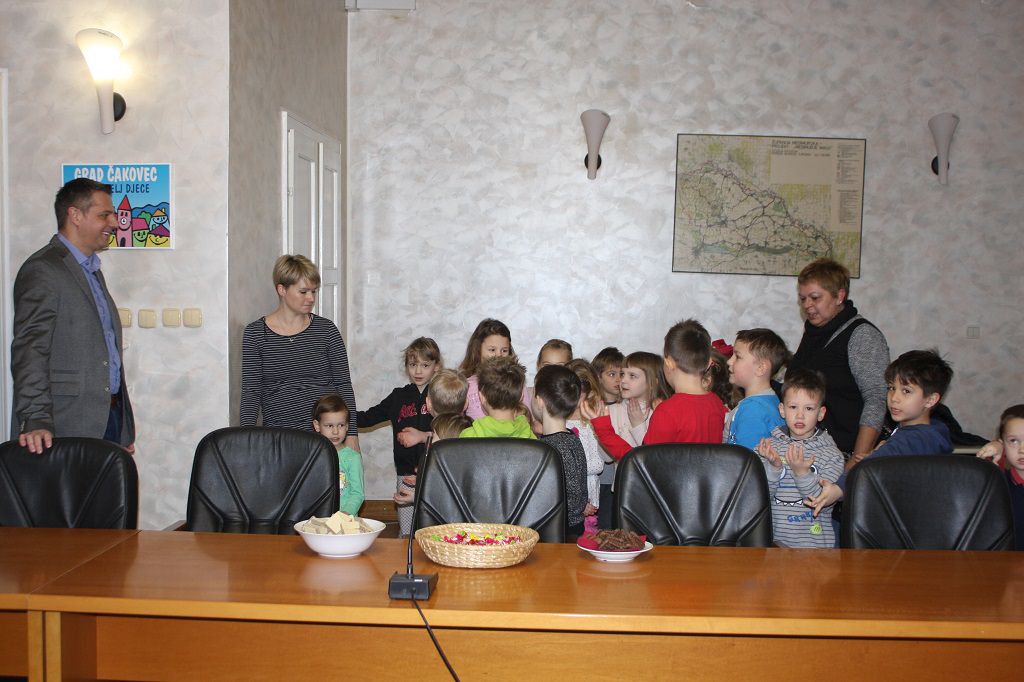 Gradonačelnik Grada Čakovca Stjepan Kovač u ponedjeljak je primio djecu iz Dječjeg vrtića Vjeverica. Djeca, polaznici mješovite skupine „Listići“, gradonačelniku su poklonili eko-kalendar i slikovnicu koju su sami izradili.