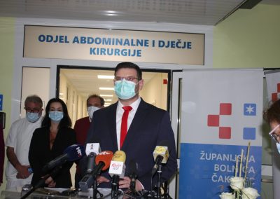 „Prve se operacije abdomena u našoj bolnici opisuju već od 30-tih godina prošlog stoljeća, a od tog se vremena mnogo promijenilo u abdominalnoj i dječjoj kirurgiji. Dijagnostika je daleko bolja i preciznija, operativni su zahvati brži, učinkoviti i sama skrb za pacijenta nakon operativnog zahvata, kvalitetna i prilagođena pacijentu. Rad na Odjelu izrazito je dinamičan, svakodnevno se primaju i otpuštaju pacijenti s različitim problemima, operativnim zahvatima, različitih karaktera, dobi i potreba. Smještamo i teško pokretne i nepokretne pacijente, malu djecu i roditelje, razgovaramo sa zabrinutom pratnjom i trudimo se svima omogućiti potrebne informacije o stanju i ozbiljnosti bolesti njihovih najmilijih. Stručnost, profesionalnost i dobar timski rad, predana i profesionalna njega od strane sestara, često nadopunjena toplom riječi, dodirom i prije svega ljudskošću, osnova su za zbrinjavanje svakog našeg pacijenta bilo velikog ili malog, stoga zahvaljujemo na pomoći Međimurskoj županiji, Gradu Čakovcu i svima koji pridonose donacijama i opremom.“, istaknuo je pročelnik Službe kirurških djelatnosti dr. Dražen Krištofić koji je zajedno s voditeljem Odjela dr. Zvonimirom Magašem pohvalio brzinu i kvalitetu izvedenih radova za koje je bila zadužena tvrtka Đurkin.