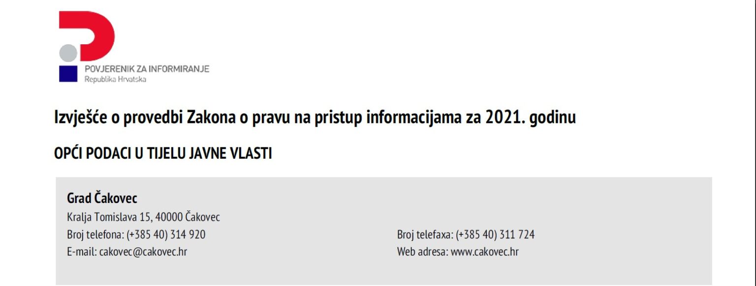 Sukladno članku 60. stavku 2 Zakona o pravu na pristup informacijama tijela javne vlasti dužna su Povjereniku dostaviti izvješće o provedbi Zakona za prethodnu godinu.