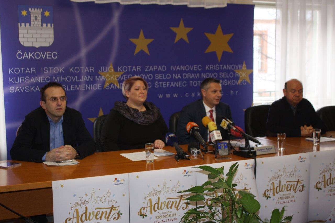 Advent u gradu Zrinskih posljednjih godina stavio je Čakovec na kartu nezaobilaznih adventskih destinacija u ovom dijelu Europe, a ovogodišnjim programom ljestvica je podignuta na još viši nivo. Program Advent u gradu Zrinskih 2018. predstavili su danas u Gradskoj vijećnici čakovečki gradonačelnik Stjepan Kovač, pomoćnica direktora Turističkog ureda Turističke zajednice Grada Čakovca Boška Ban Vlahek te župnici čakovečkih župa Svetog Nikole biskupa fra Željko Železnjak i Svetog Antuna Padovanskog fra Tomislav Božiček. O Adventu u gradu Zrinskih koji započinje 1.  i traje do 24. prosinca gradonačelnik Kovač govorio je kroz prizmu najradosnijeg doba u godini u kojem Čakovec drugačije diše.