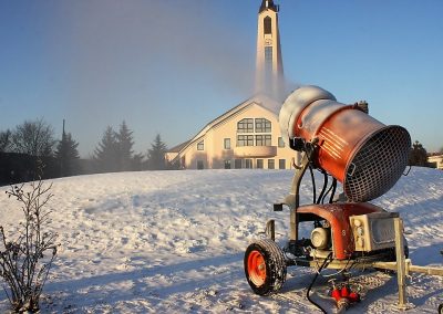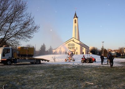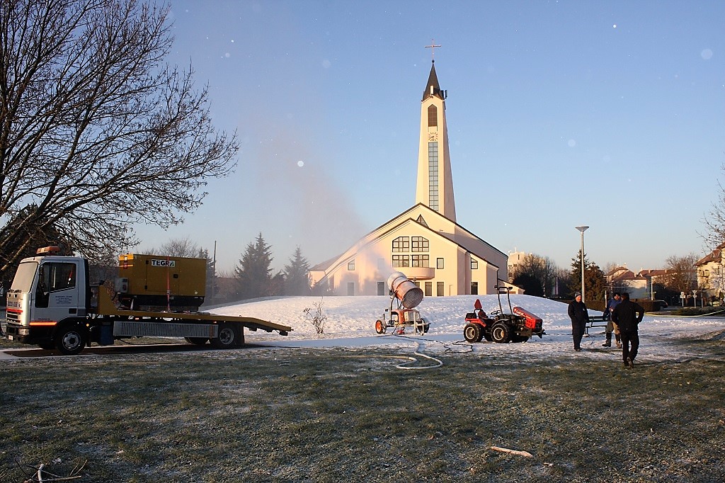 Tijekom noći s petka na subotu, djelatnici Gradskog poduzeća „EKOM“, uređajem za proizvodnju umjetnog snijega, zasniježiti će brežuljak na čakovečkom Jugu. Tako bi do jutra trebao biti stvoren snježni pokrivač debljine nekoliko centimetara, dovoljan za sanjkanje. Ako vremenski uvjeti to dopuste, top za umjetni snijeg preselit će se i u Perivoj Zrinskih, kako bi se zasniježilo i veliko gradsko sanjkalište, ono podno zidina Starog grada. U planu je i stvaranje umjetnog snijega na sanjkalištu u Ivanovcu.