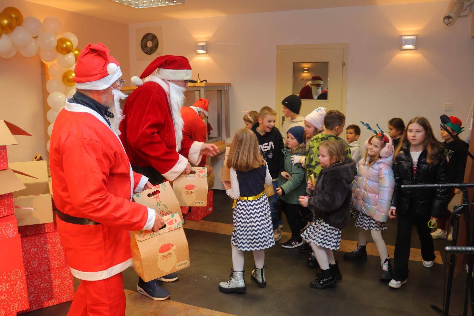 Na kraju programa Djed Božićnjak je sa svojim pomoćnicima razveselio najmlađe podijelivši 180 slatkih paketa, a druženje je nastavljeno uz tople napitke i kolače koje su pripremili vrijedni domaćini.
