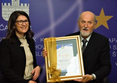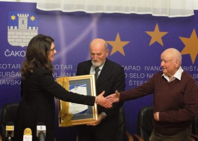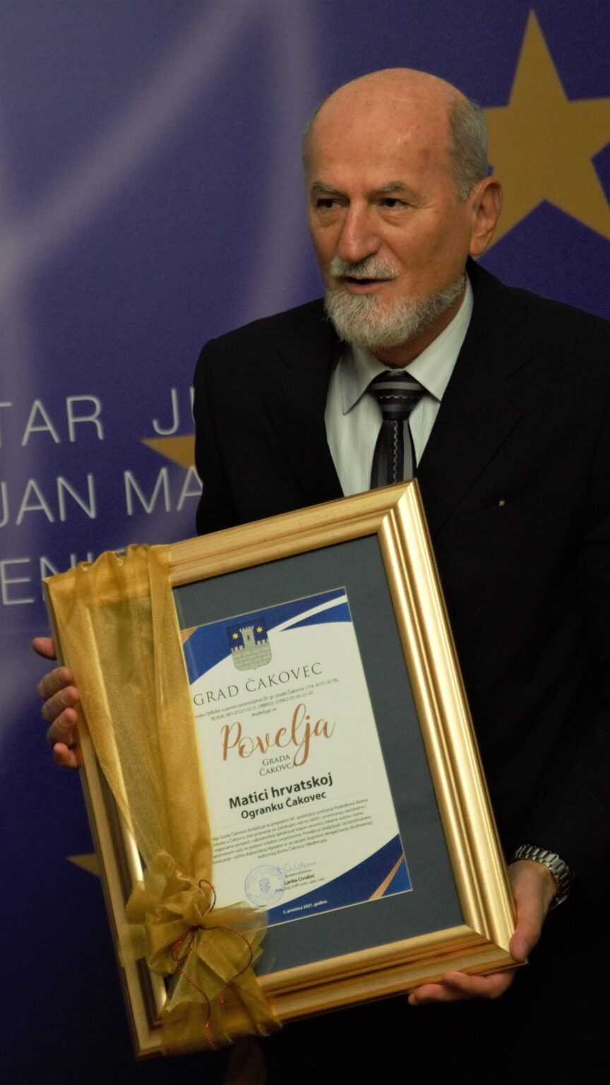 Ovo veliko priznanje, temeljem Odluke gradonačelnice Grada Čakovca, primila je delegaciju Matice na čelu s predsjednikom prof. Ivanom Pranjićem, uz prof. dr. Stjepana Hranjeca, ravnatelja Centra za kulturu Mursko Središće Zorana Turka te tajnika ogranka Tomu Blažeku. „Ponosan sam, sretan i naprosto iznenađen ovom čašću. Hvala od srca što ste prepoznali napore svih onih koji sudjeluju u radu Matice, u stvaranju i održavanju naše kulture i svega kajkavskoga. Ova za nas nagrada, potvrda je našeg rada i dokaz da smo zaista jedan od najboljih ogranaka u cijeloj zemlji sa svojom nakladničkom djelatnosti od desetak knjiga godišnje, uz mnogobrojne tribine, koncerte, izložbe, susrete, znanstvene skupove i drugo“, pritom je u svom obraćanju gradonačelnici rekao predsjednik čakovečkog ogranka. „Posebno mi je drago kao bivšem predsjedniku ogranka, da je uz Povelju kao priznanje našeg rada, napokon Grad uveo i sufinanciranje djelatnosti Matice, ovo je bilo potrebno i mnogo ranije. Ovo je dokaz da nas gradonačelnica podržava na čemu zahvaljujem, ovo je iznimna čast“, pritom je dodao prof. dr. Hranjec.