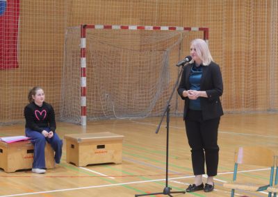 Na samom početku okupljene je pozdravila ravnateljica škole Snježana Odak Hrkač, poželjevši učenicima ugodan boravak i uspjeh na natjecanju. U svom obraćanju istaknula je kako čitanje za mnoge od njih nije tek školska obveza, nego pravo putovanje kroz svjetove mašte i znanja. „Vjerujem kako za sve vas koji ste ovdje čitanje nije samo nekakva školska obaveza, već putovanje kojim odlazite na neka nova mjesta i upoznajete nove ljude. Zato mi je uvijek drago vidjeti toliko mladih ljudi koji još uvijek vole čitati“, kazala je ravnateljica.