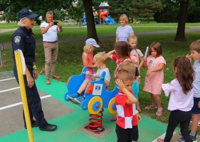 S obzirom na to da je prometni odgoj i obrazovanje djece u poznavanju prometnih propisa ima veliku ulogu u povećanju sigurnosti djece, kao najranjivije kategorije sudionika u prometu, na inicijativu Alenke Hošnjak i Irene Branović, predstavnica Policijske uprave međimurske te članica koordinacijskog odbora “Grad Čakovec – prijatelj djece”, 2023. godine, pokrenut je projekt “Do sigurnosti djece na dječjim igralištima”. Tom prilikom iz proračuna Grada Čakovca osigurana su sredstva u iznosu od 2 tisuće 125 eura koja su utrošena na nabavku igrala, njihalica na oprugama u obliku autića. U dogovoru s predstavnicima Grada Čakovca, montaža igrala planirana je na površini koja bi sadržavala elemente prometnog poligona za pješake, vozače bicikla i vozače osobnih prijevoznih sredstava.
