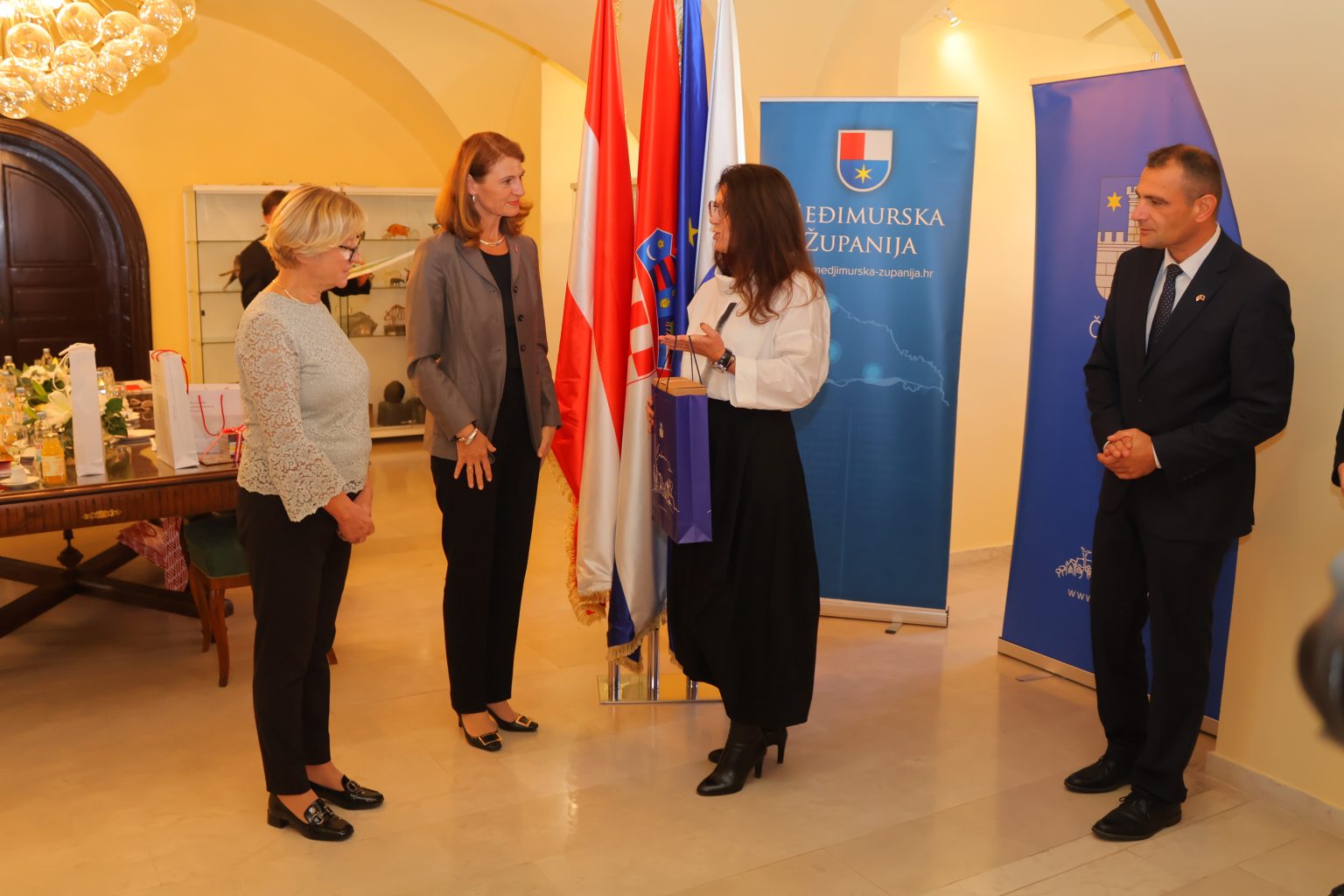 Župan Međimurske županije Matija Posavec i gradonačelnica Grada Čakovca Ljerka Cividini ugostili su novu veleposlanicu Republike Austrije u Republici Hrvatskoj Nj. E. Yvonne Tončić-Sorinj, čime je nastavljena uspješna suradnja naše regionalne uprave s ovom europskom zemljom, s čijim regijama Međimurje i Čakovec godinama povezuju plodonosni sporazumi o suradnji i prijateljstvu. Među njima je i sporazum Međimurske županije i Savezne pokrajine Štajerska o suradnji na gospodarskom planu, sklopljen 2023. godine, kada su se povezale najproduktivnije i gospodarski najsnažnije regije Austrije i Hrvatske. Jednako tako, produktivna suradnja njeguje se i sa Saveznom pokrajinom Koruškom, istaknuo je župan Posavec u susretu s veleposlanicom Tončić-Sorinj.