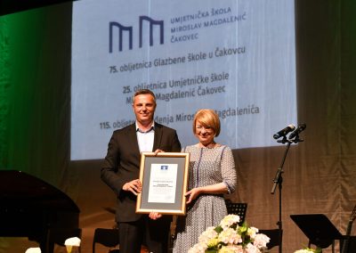 Nakon otvaranja izložbe, na red je došla i glazbena umjetnost. Umjetnička škola „Miroslav Magdalenić“ Čakovec, ove godine obilježava čak tri važne obljetnice: 75. obljetnicu Glazbene škole u Čakovcu 1946. – 2021., zatim 25. obljetnicu Umjetničke škole „Miroslav Magdalenić“ Čakovec 1996. – 2021. te 115. obljetnicu rođenja Miroslava Magdalenića 1906. – 2021.. Od nekoliko događanja kojima se će se ovi vrijedni jubileji proslaviti, škola je uz Dan Grada Čakovca, organizirala sjajan koncert svojih profesora i bivših učenika škola, od kojih neki danas rade u toj ustanovi, dok su neki još uvijek na putu glazbenog školovanja. Koncertu su prethodile pozdravne riječi ravnateljice škole Senke Bašek Šamec, a zatim su slijedili atraktivni nastupi svih profesora i njihovih mladih gostiju. Gradonačelnik Stjepan Kovač u samom je finalu koncerta ravnateljici škole uručio povelju Grada Čakovca te tako nagradio njeno uspješno djelovanje u glazbenom i umjetničkom obrazovanju brojnih generacija.