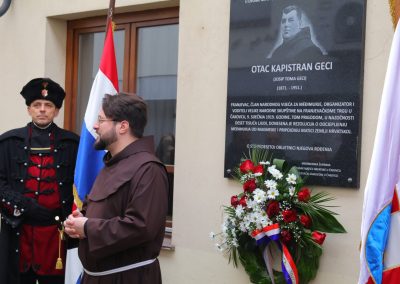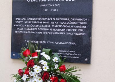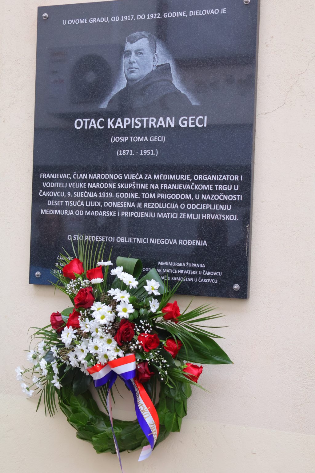 Važnu ulogu u stvaranju povijesti Međimurja u tim turbulentnim i teškim vremenima imao je i o. Kapistran Geci, franjevac i član Narodnog vijeća za Međimurje koji je otvorio veliku narodnu skupštinu u Čakovcu. Uspomenu na njega čuva i spomen-ploča na Katoličkom domu u Čakovcu, gdje je također položen vijenac i zapaljene svijeće. Odavanju počasti uz župana Međimurske županije Matiju Posavca, gradonačelnicu Grada Čakovca Ljerku Cividini, predsjednika Gradskog vijeća Grada Čakovca Josipa Vargu, predstavnike Ogranka Matice hrvatske u Čakovcu,  članove i predsjednika Zrinske garde Đuru Bela, pridružio se, predvodeći molitvu i gvardijan franjevačkog samostana fra Filip Đurđević.
