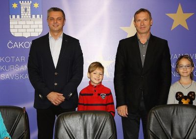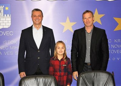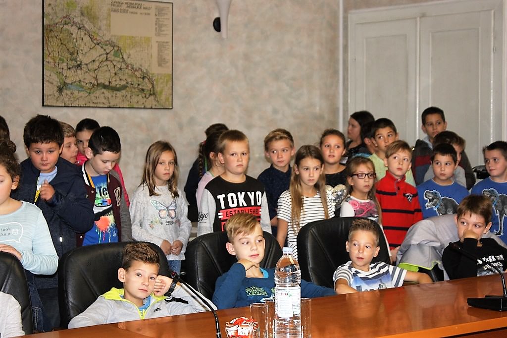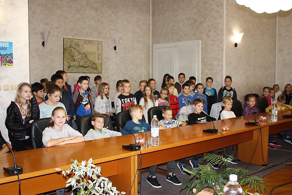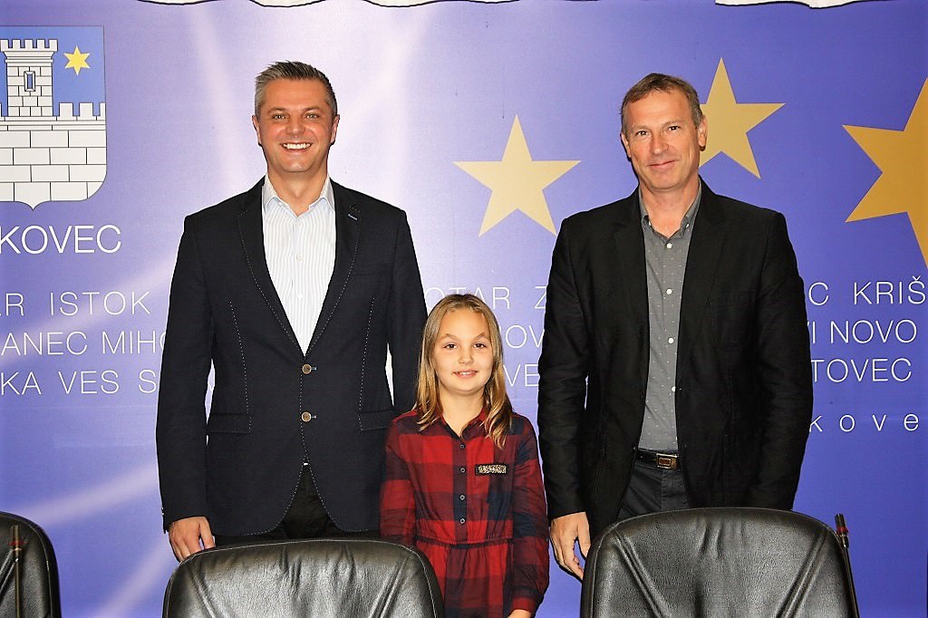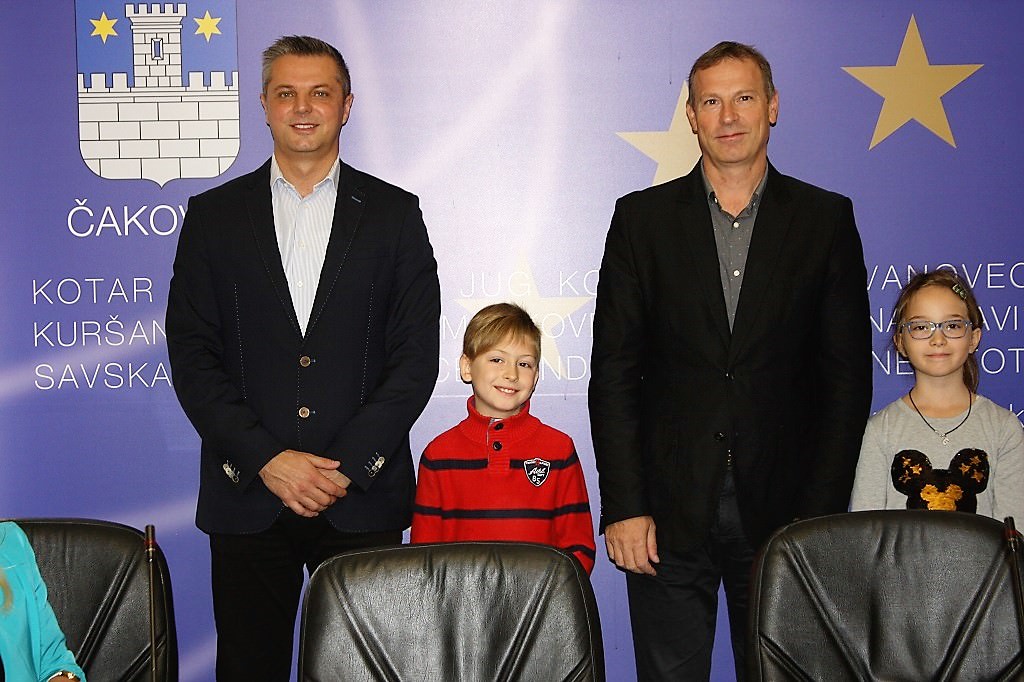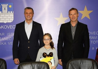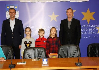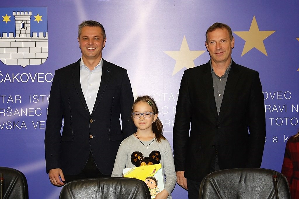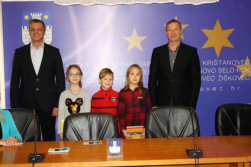 Ravnatelj I. osnovne škole Siniša Stričak i gradonačelnik Kovač uručili su nagrade trojci učenika čiji su likovni radovi odabrani u projektu Ecological Literacy. To su Nela Levačić, Mateo Demario Časni i Elena Šarić.