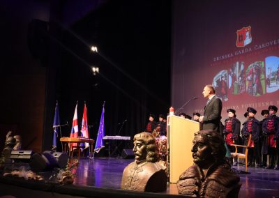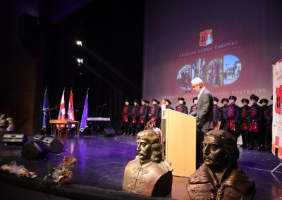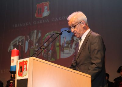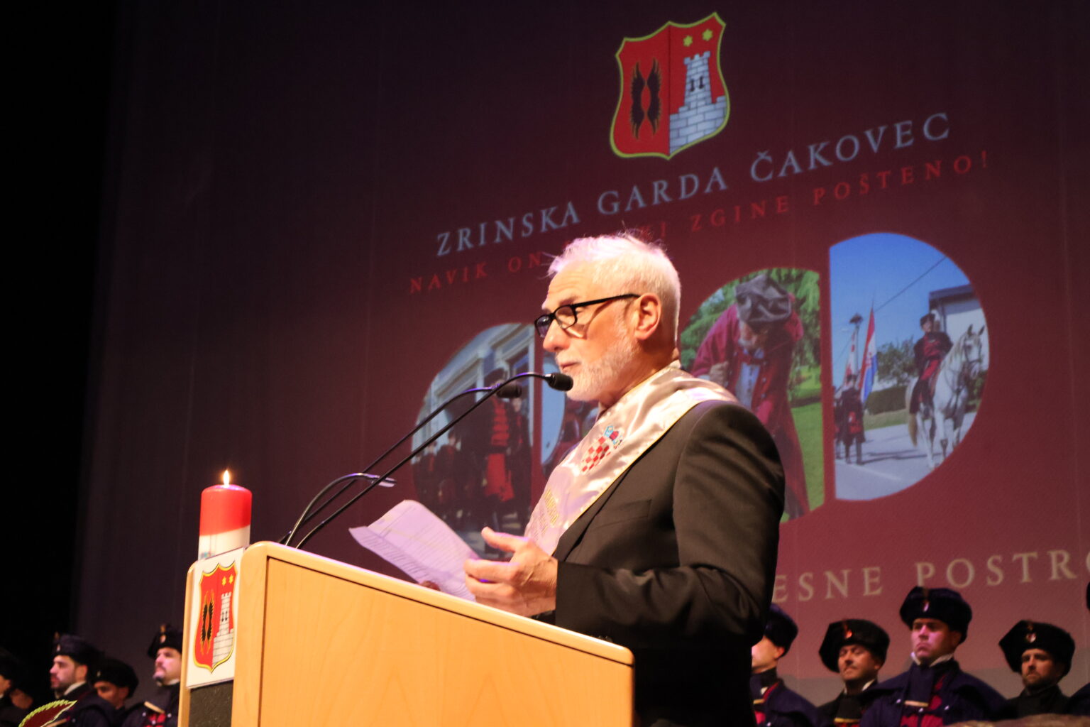 „Zrinski i Frankopani ostavili su veliki trag, ne samo u međimurskoj i hrvatskoj, već i u europskoj povijesti. Njihov uspon trajao je 320 godina do tragičnog pada 1671. godine, kada su 30. travnja tragično pogubljeni u Bečkom Novom Mjestu zato što su se borili za hrvatsku slobodu i prava hrvatskog naroda i upravo iz tog razloga na taj datum obilježavamo Dan Međimurske županije.“ kazao je župan Matija Posavec te istaknuo kako se danas ponosno nazivamo županijom Zrinskih. „Izuzetno su nam važna ulaganja u naše kulturno-povijesne spomenike, osobito one vezane uz Zrinske. Najvećim investicijskim ciklusom u kulturi Međimurja revitalizirali smo utvrdu Staroga grada Zrinski u Riznicu Međimurja, a uskoro završava i sanacija palače Staroga grada Zrinskih u Čakovcu, a krenut  ćemo i u obnovu mauzoleja i pavlinskog samostana u Šenkovcu u kojem su pokopani članovi obitelji Zrinski“, kazao je župan te dodao kako će Međimurska županija u suradnji s Primorsko-goranskom županijom putove Zrinskih i Frankopana istaknuti kao kulturno-turističku rutu koja vodi kroz Hrvatsku do Bečkog Novog Mjesta gdje su Zrinski i Frankopan skončali svoje živote, a s Gradom Skradinom također će se povezati naša slavna prošlost obzirom da je upravo na tom području kolijevka ovih velikaških obitelji rekao je župan Posavec te čestitao Zrinskog gardi veliku obljetnicu.