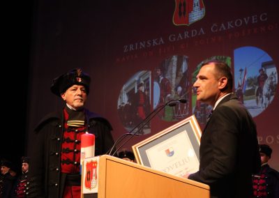 “Vaša povijesna postrojba, postala je dio čakovečkog kulturnog i turističkog identiteta, te glavna atrakcija na brojnim manifestacijama. Svako gostovanje i sudjelovanje u eventima širom Hrvatske koristite kako bi promovirali nasljeđe obitelji Zrinskih te time direktno pozitivno pridonosite promociji Čakovca, kao turističkog i kulturnog središta ovog dijela Hrvatske. Poznavajući vas, siguran sam da je sve ovo samo najava velikih stvari koje planirate u budućnosti te o kojima ćemo sigurno govoriti na obljetnicama koje slijede. Još jednom, čestitke u povodu 20. rođendana i hvala svim članovima udruge na svemu što čine za zajednicu”, rekao je pritom predsjednik GV-a.