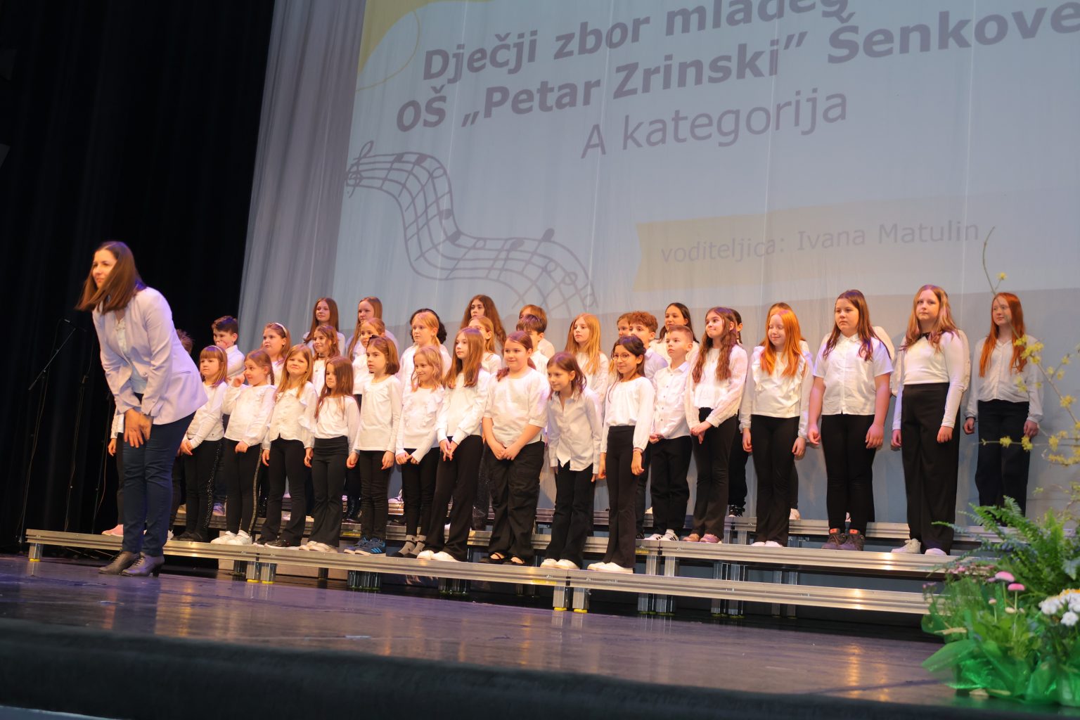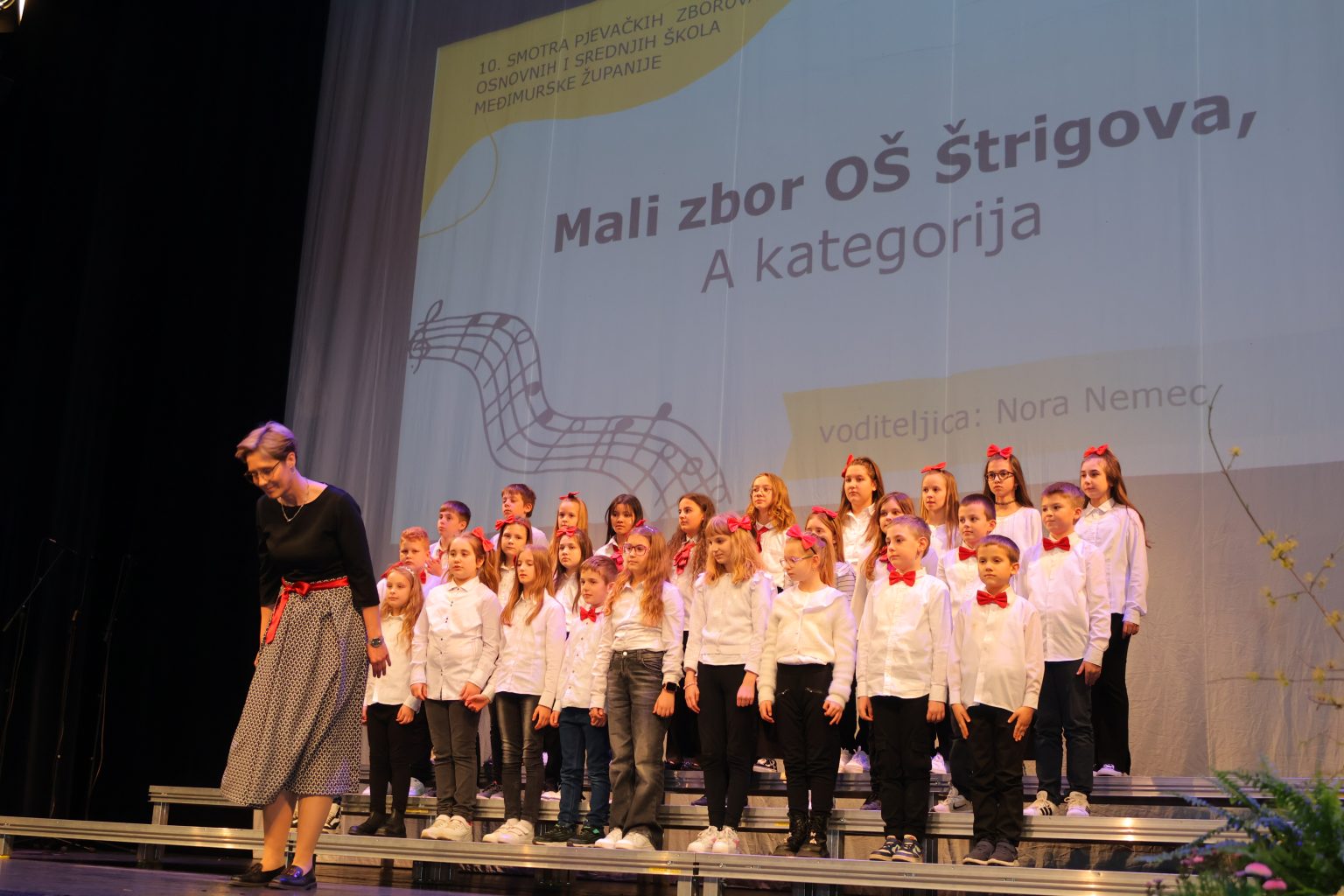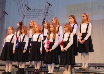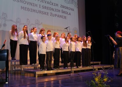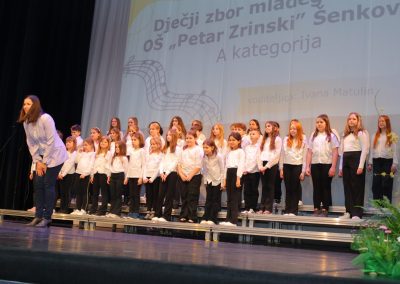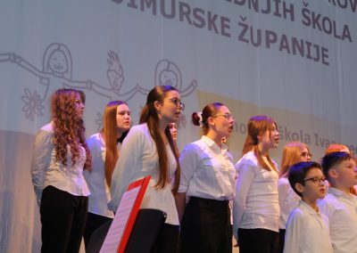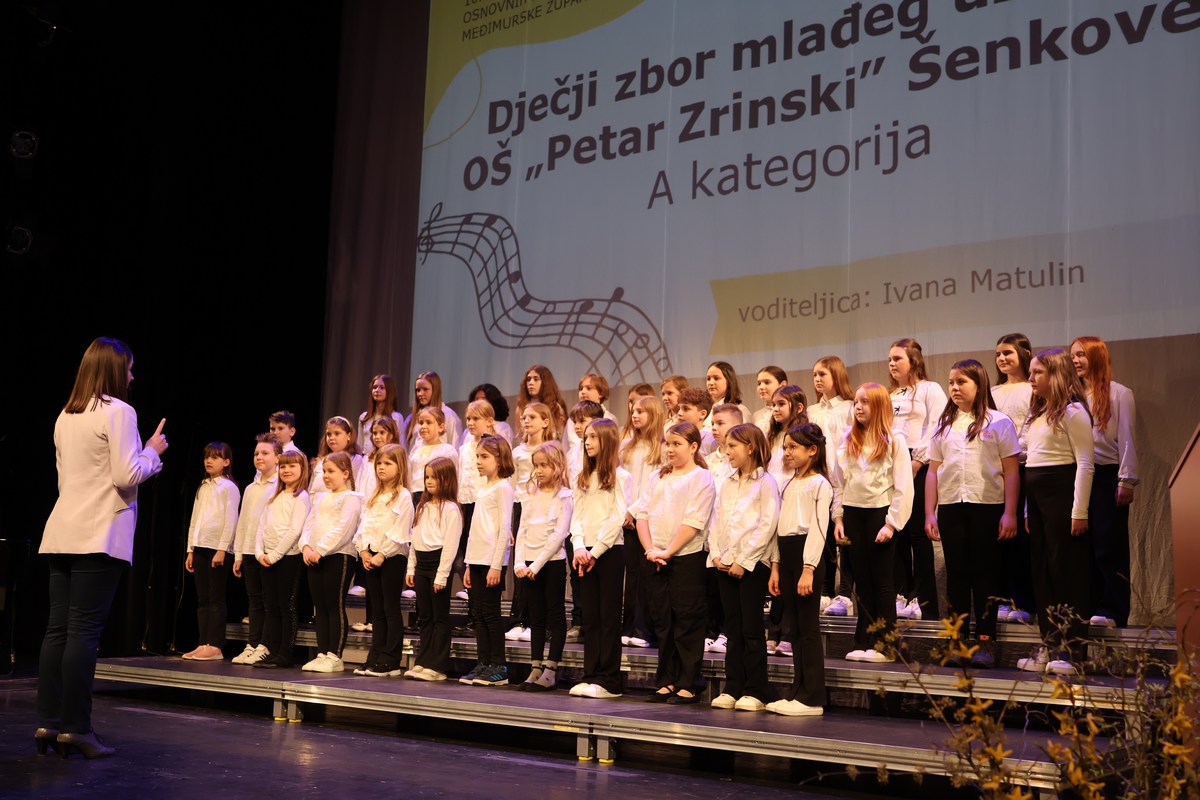 Na pozornici Centra za kulturu u natjecateljskoj kategoriji nastupili su Dječji zbor mlađeg uzrasta OŠ Petar Zrinski Šenkovec pod vodstvom Ivane Matulin, Mali zbor OŠ Štrigova pod vodstvom Nore Nemec i Veliki zbor OŠ Ivana Gorana Kovačića Sveti Juraj na Bregu pod vodstvom Jelene Grubić.