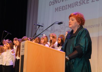 Gradonačelnica Grada Čakovca Ljerka Cividini izrazila je radost zbog velikog broja nazočnih zborova što je dokaz kako se u našim školama daje prostor djeci, uz obvezno učenje i za njihovo kreativno izražavanje. Uputila je čestitke učiteljima na angažmanu, ali i svima onima koji su za ovu prigodu bili uz njih, pritom istaknuvši “Sretni i veseli – takvi trebate biti dok pjevate. Zborsko pjevanje nije samo glazba – to je učenje, prijateljstvo i rast. Svaki nastup je prilika da pokažete trud, emociju i ljubav prema glazbi. Uživajte u ovim trenucima, jer oni će vam kroz život ostati kao draga uspomena.“, kazala je gradonačelnica Cividini.