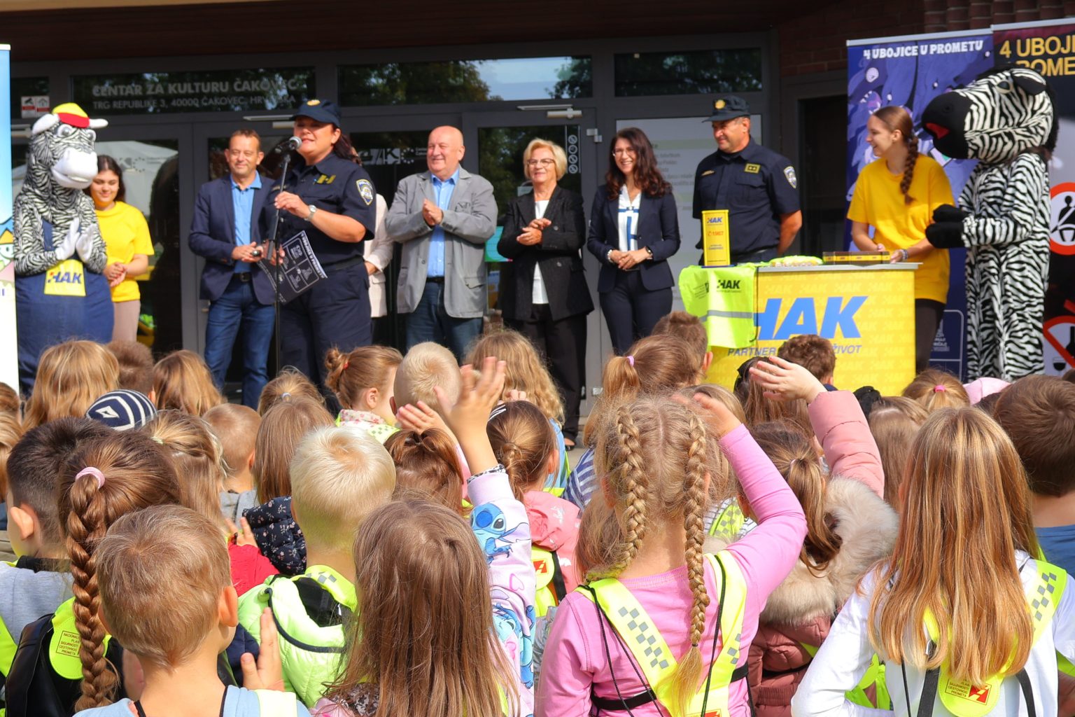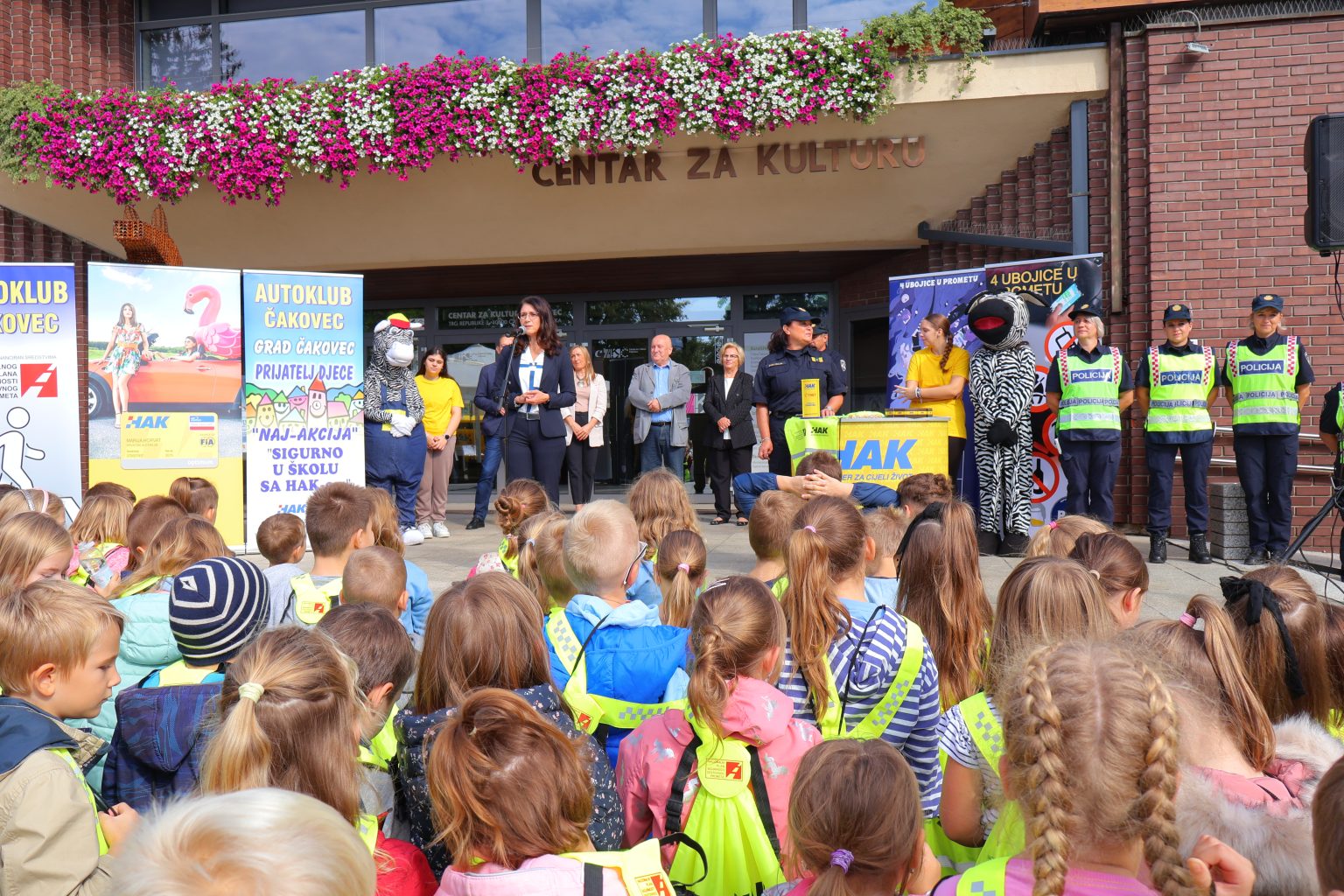 Danas je na Trgu Republike u Čakovcu održan centralni dio akcije kojem je prisustvovalo gotovo 300 prvašića iz I.,II. i III. osnovne škole, zatim OŠ Ivanovec, OŠ Kuršanec, te Centra za odgoj i obrazovanje. Djeca su na vježbalištu u centru grada slušala savjete o sigurnom kretanju prometnicama, a potom, uz voditelje, prošla simulacije na vježbalištu te prošetala ulicama da naučeno utvrde i u stvarnim situacijama.