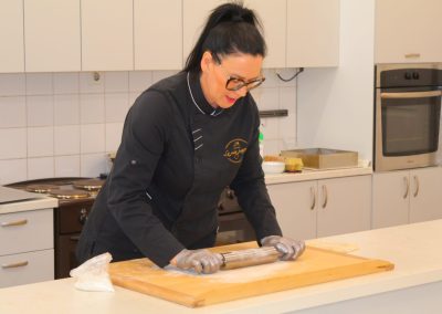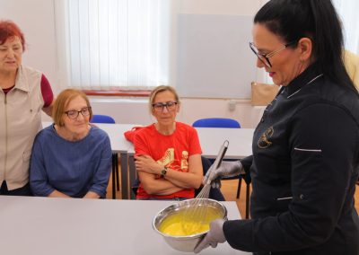Radionicu je vodila Božica Matjašec iz obrta “La mia passione” iz Podbresta i detaljno demonstrirala cijeli proces pripreme kremšnita prema originalnoj recepturi. Božica je svoju strast prema slastičarstvu otkrila još kao 12-godišnjakinja. Iako je završila ekonomsku školu i radila u struci, hobi je ubrzo prerastao u uspješan posao. Njezina stručnost i ljubav prema tradicionalnim receptima bile su ključne za uspjeh radionice.