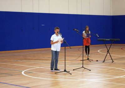 U prigodnom programu nastupili su učenici i nastavnici Osnovne škole Ivanovec. Dvoranu su rezanjem vrpce otvorili gradonačelnik Čakovca Stjepan Kovač, dječji gradonačelnik Lovro Horvat i ravnateljica škole Palmina Novak. Dvoranu je blagoslovio ivanovečki župnik vlč. Danijel Bistrović, a početak održavanja nastave tjelesnog odgoja simbolično su trčanjem jednog kruga, obilježili su učenici 6a ove škole.
