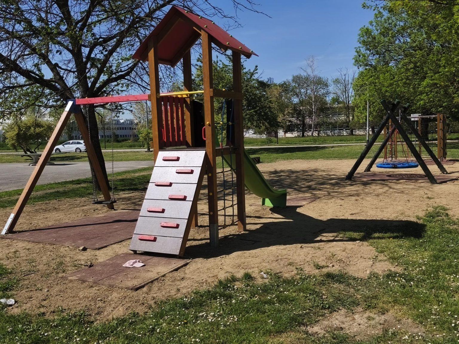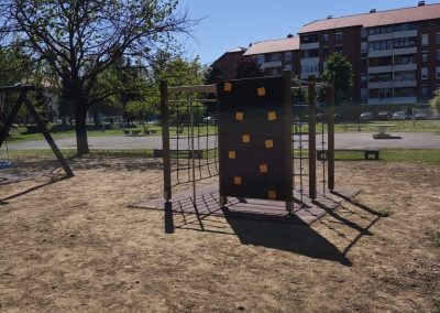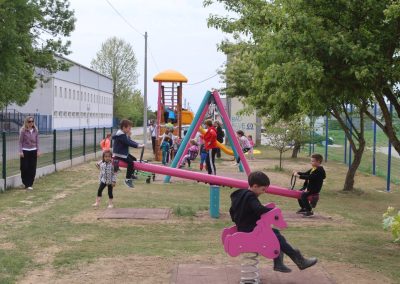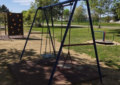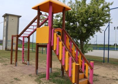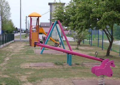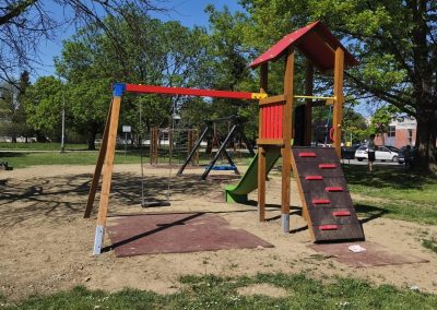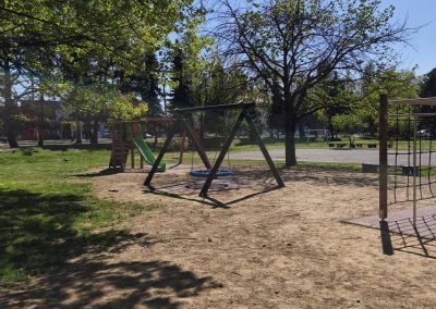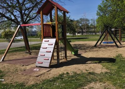 Na toj lokaciji uklonjen je dio dotrajale opreme te je izvedeno novo dječje igralište. Od devet postojećih igrala zadržana su samo dva – ljuljačka s dvije njihaljke i vrtuljak – kao i postojeća urbana oprema, uključujući klupe. U sklopu novog uređenja postavljeno je drveno kombinirano igralo koje uključuje samostojeću kućicu povezanu s ravnim toboganom. Također je ugrađena ljuljačka s košarom, odnosno igralo s drvenom konstrukcijom i ovalnom sjedalicom od pletenih užadi. Dodatno je postavljena i penjalica četvrtastog oblika s drvenom konstrukcijom, opremljena različitim elementima za penjanje poput prečki, mreže, stijene, mornarskih ljestava i užeta. Ispod svih igrala postavljena je antistres podloga minimalne debljine četiri centimetra, izvedena od gumenih ploča dimenzija 50 x 50 centimetara. Prostor je upotpunjen novom urbanom opremom, uključujući metalni koš za smeće obložen drvenim letvicama. Ukupna vrijednost izvedenih radova na ovom igralištu iznosi 24.238,70 eura bez PDV-a.